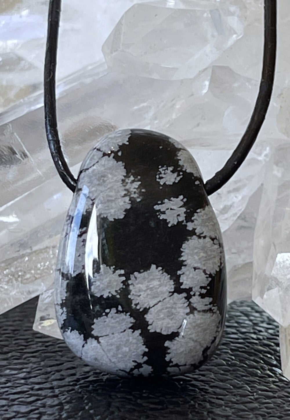 Sneeuwvlok Obsidiaan, met de algemene eigenschappen van Obsidiaan, is een zachtwerkende Obsidiaansoort en bevordert innerlijke rust en vrede en zorgt voor balans in lichaam, geest en ziel.