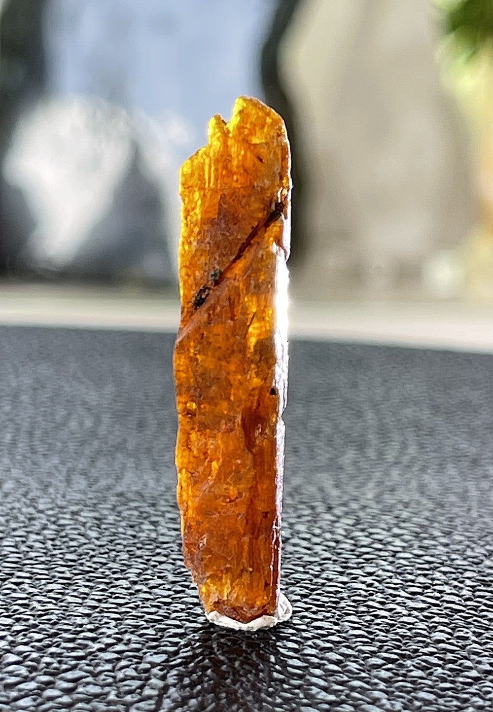 Oranje Kyaniet ruw plat staafje met mooie glans uit Loliono, Tanzania, klein