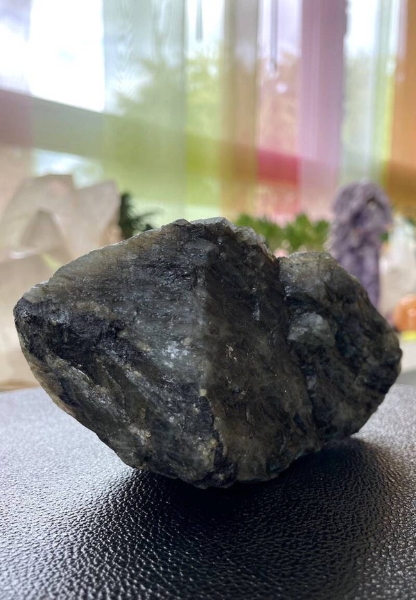Labradoriet uit Madagascar groot ruw stuk, aan één zijde gepolijst, kan staan