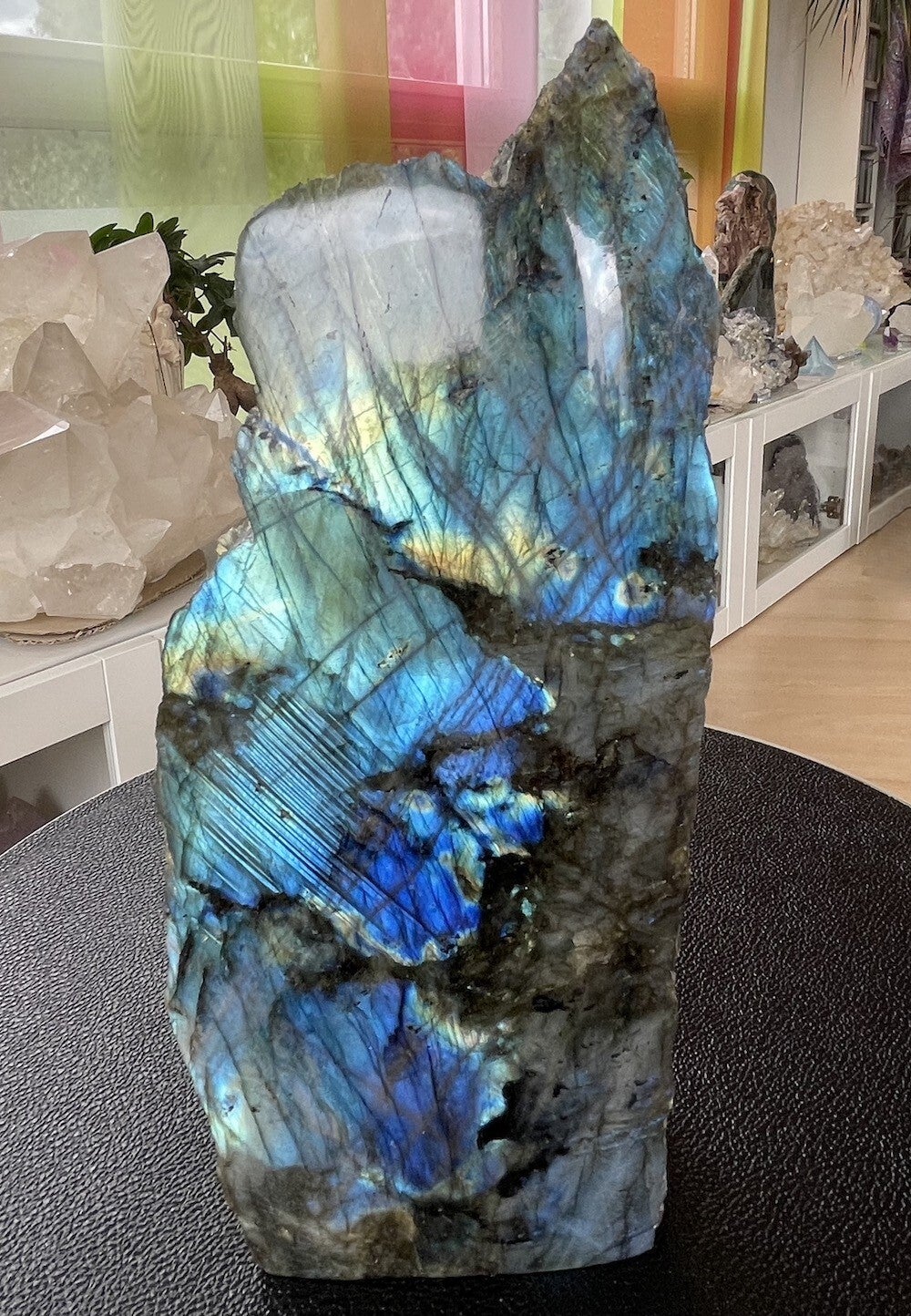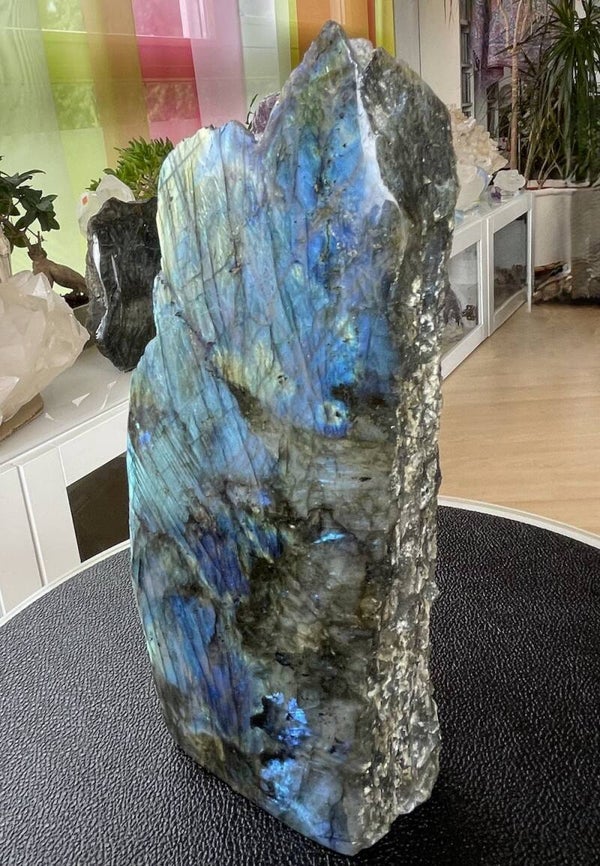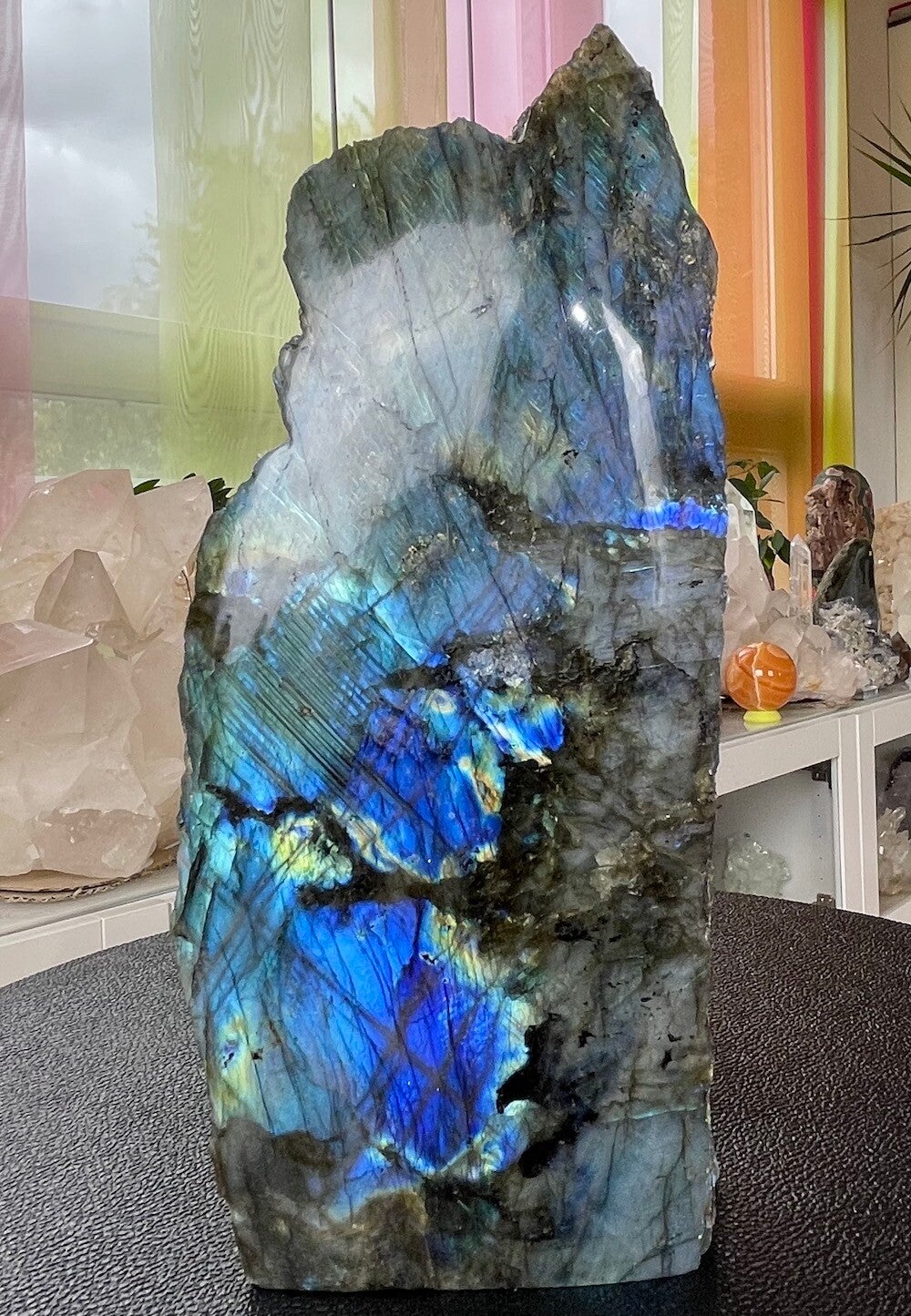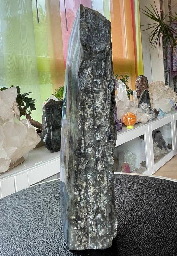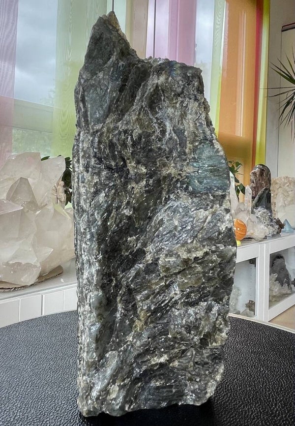 Labradoriet uit Madagascar groot ruw stuk, aan één zijde gepolijst