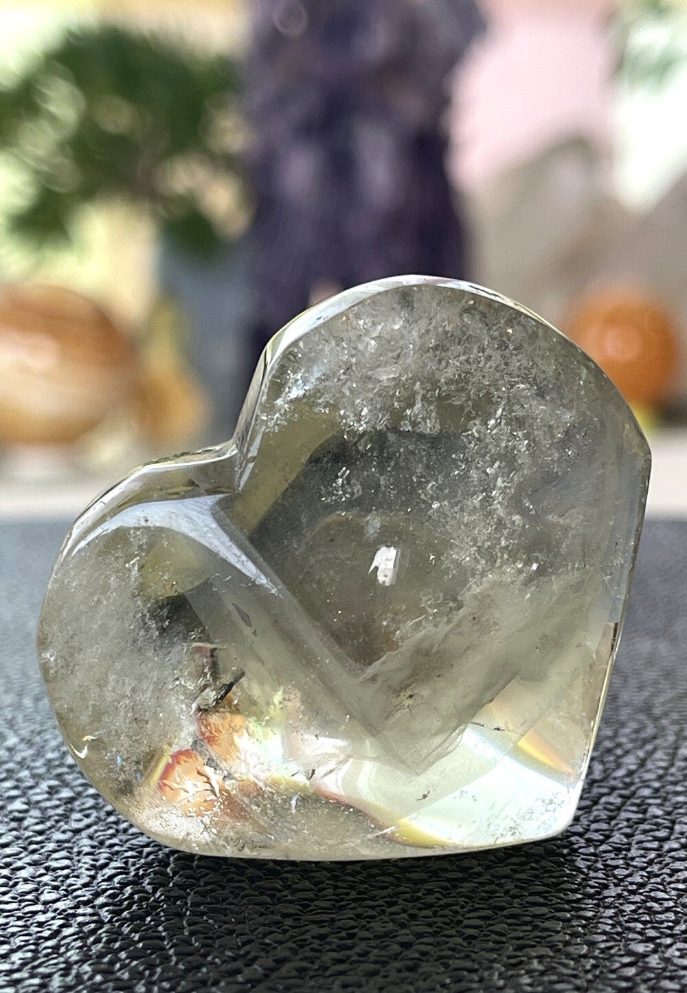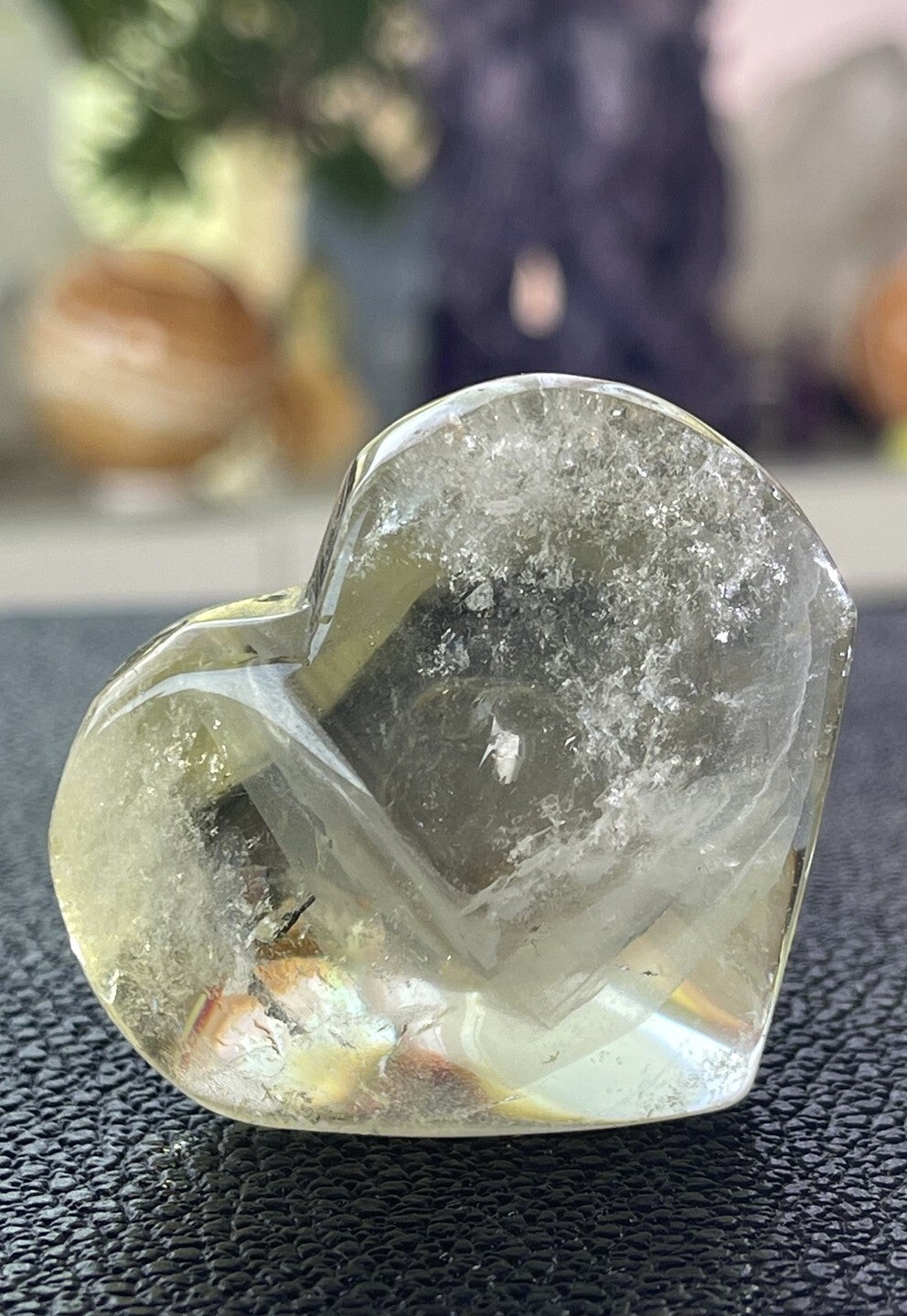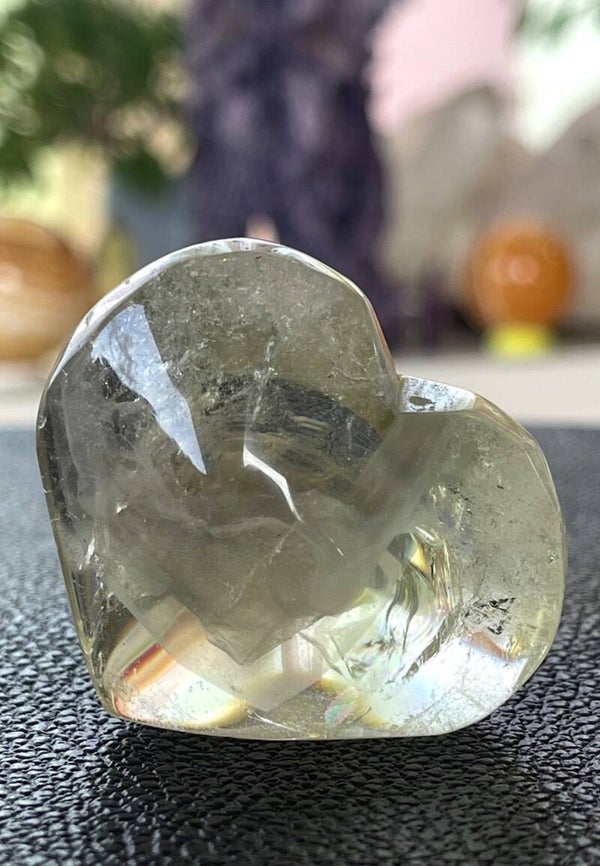 Lemonkwarts hartje met regenboogjes in de steen, medium