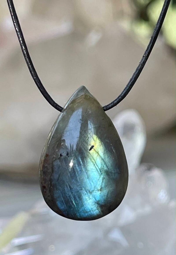 Labradoriet hangertje uit Madagaskar doorboord druppel, met veter