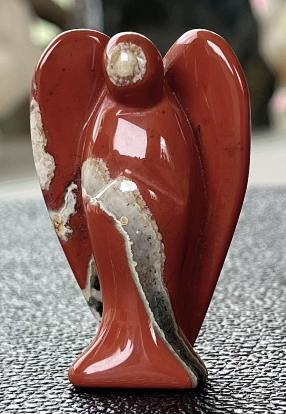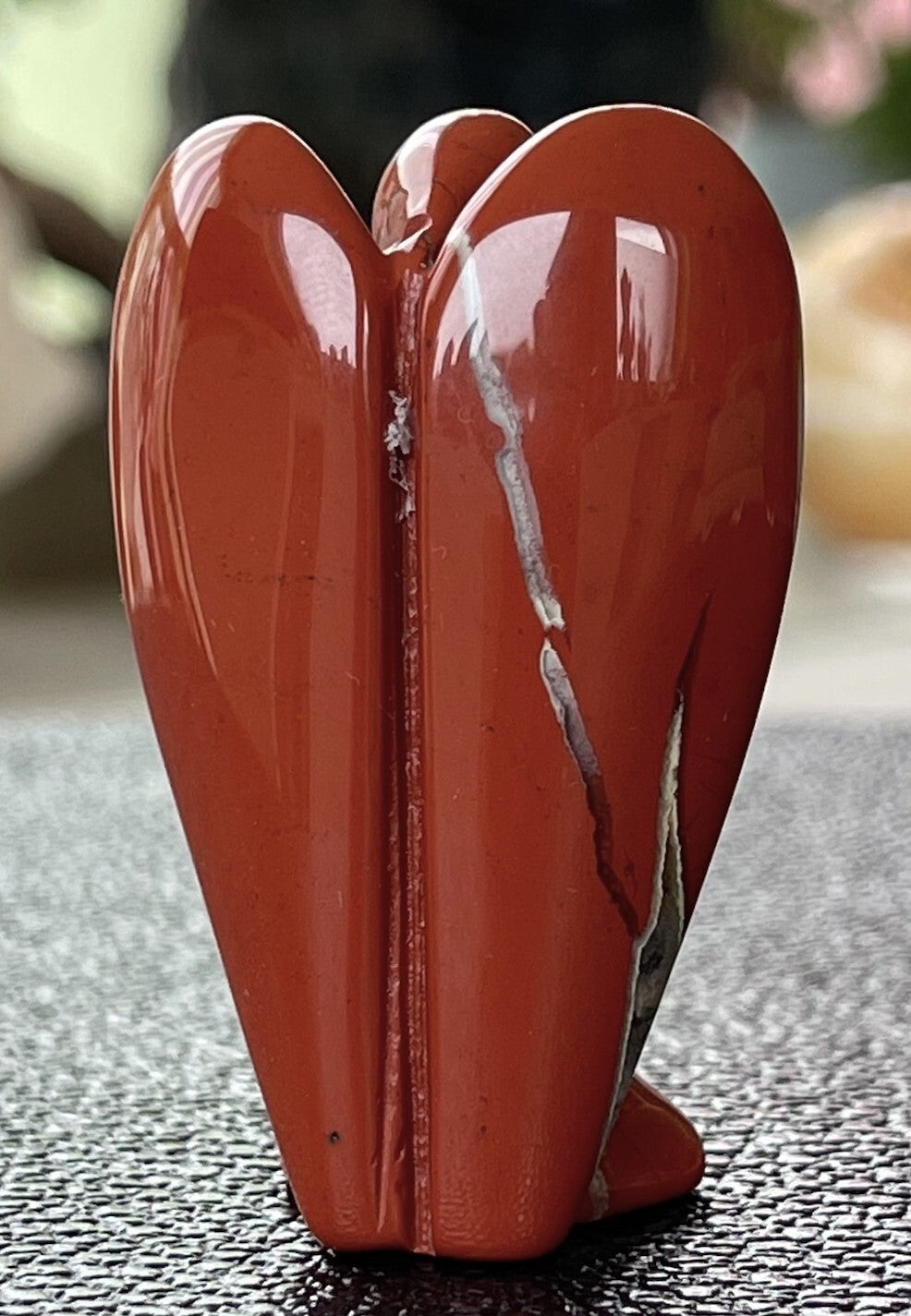 De steen werkt verwarmend en voorziet het lichaam van energie. Het helpt je in je kracht staan en bevordert wilskracht en doorzettingsvermogen. Rode Jaspis heeft een positieve werking op het bloed, werkt ontgiftend, stimuleert de werking van de lever en de stofwisseling.