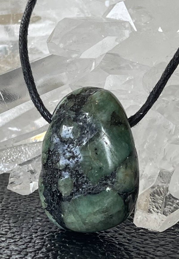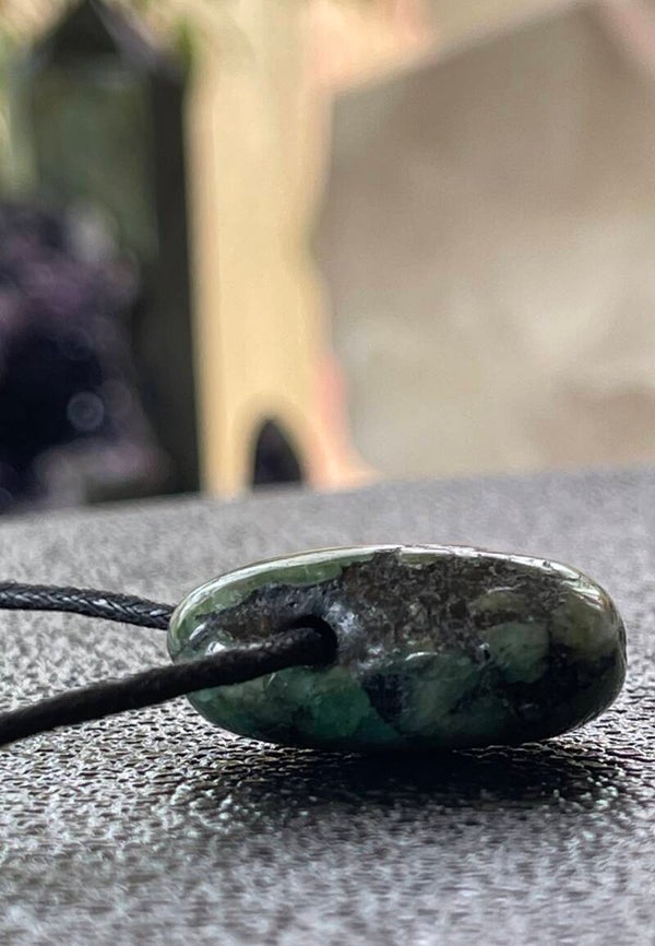 Smaragd uit Brazilië hangertje doorboord, met veter