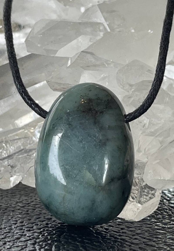 Smaragd uit Brazilië hangertje doorboord, met veter