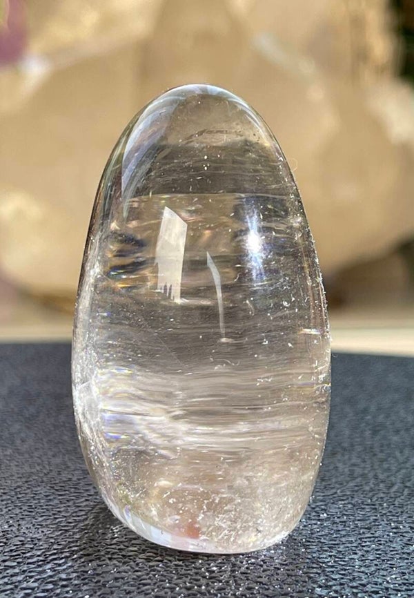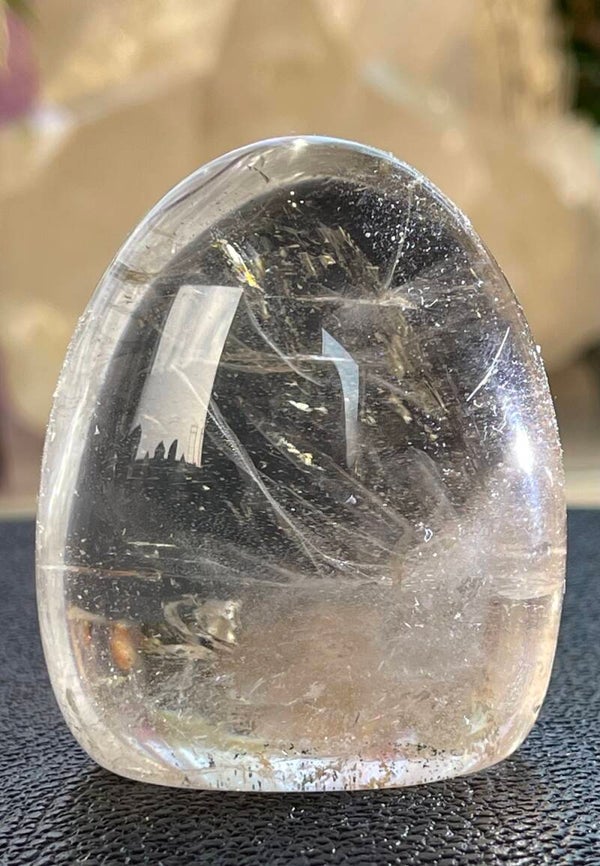 Prachtige Rookkwarts free form sculptuur licht van kleur, gepolijst, kan staan, klein