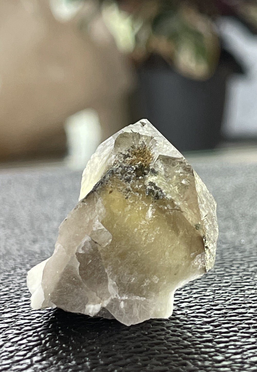 Ruw stukje (Rook-) Kwarts uit La Cabrera, Madrid, Spanje, klein puntje