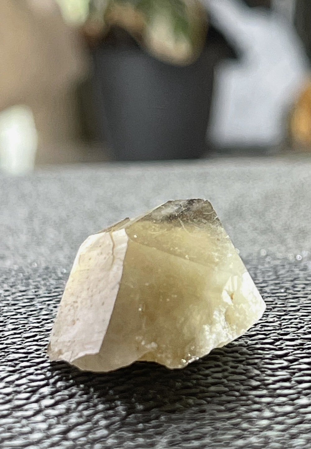 Ruw stukje (Rook-) Kwarts, mooi helder puntje uit La Cabrera, Madrid, Spanje
