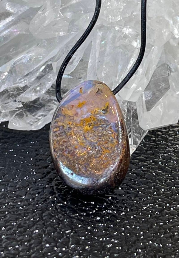 Boulder Opaal platte doorboorde hanger uit Australië, met veter