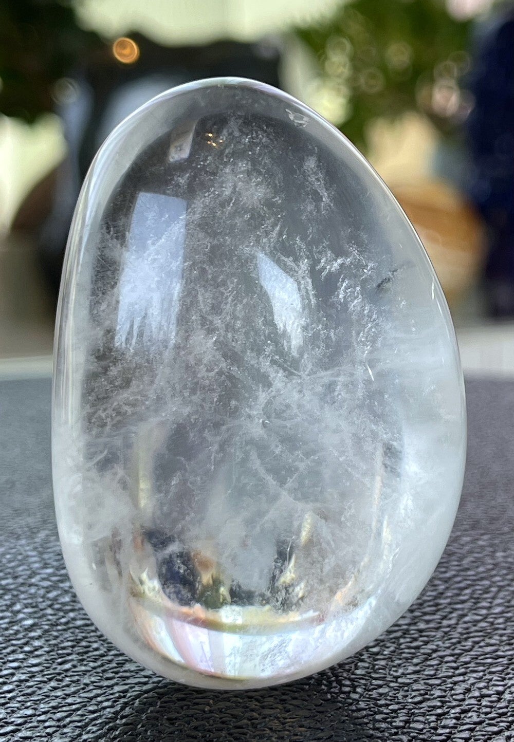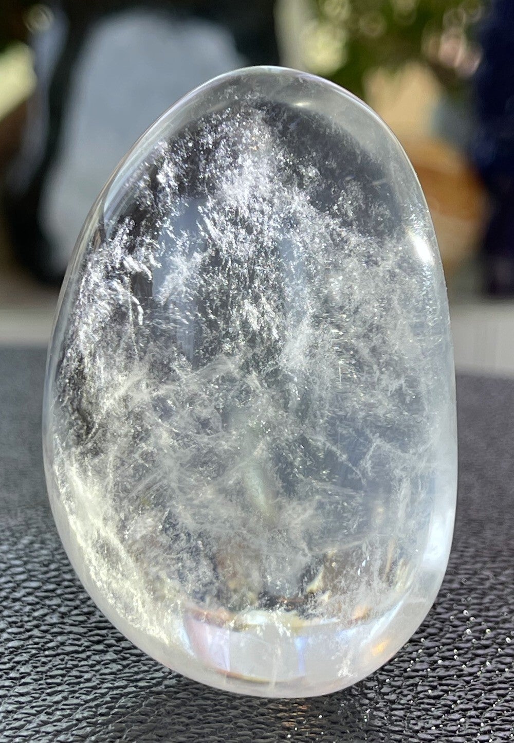 Een heldere steen met sluierpatroon van binnen