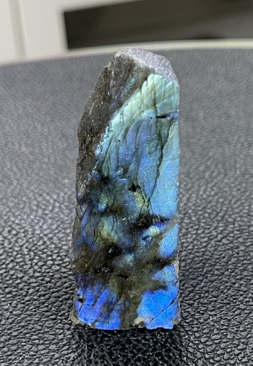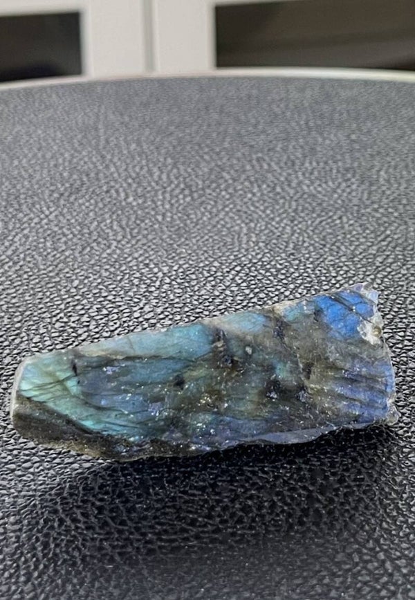 Labradoriet uit Madagaskar ruw, één zijde gepolijst, klein