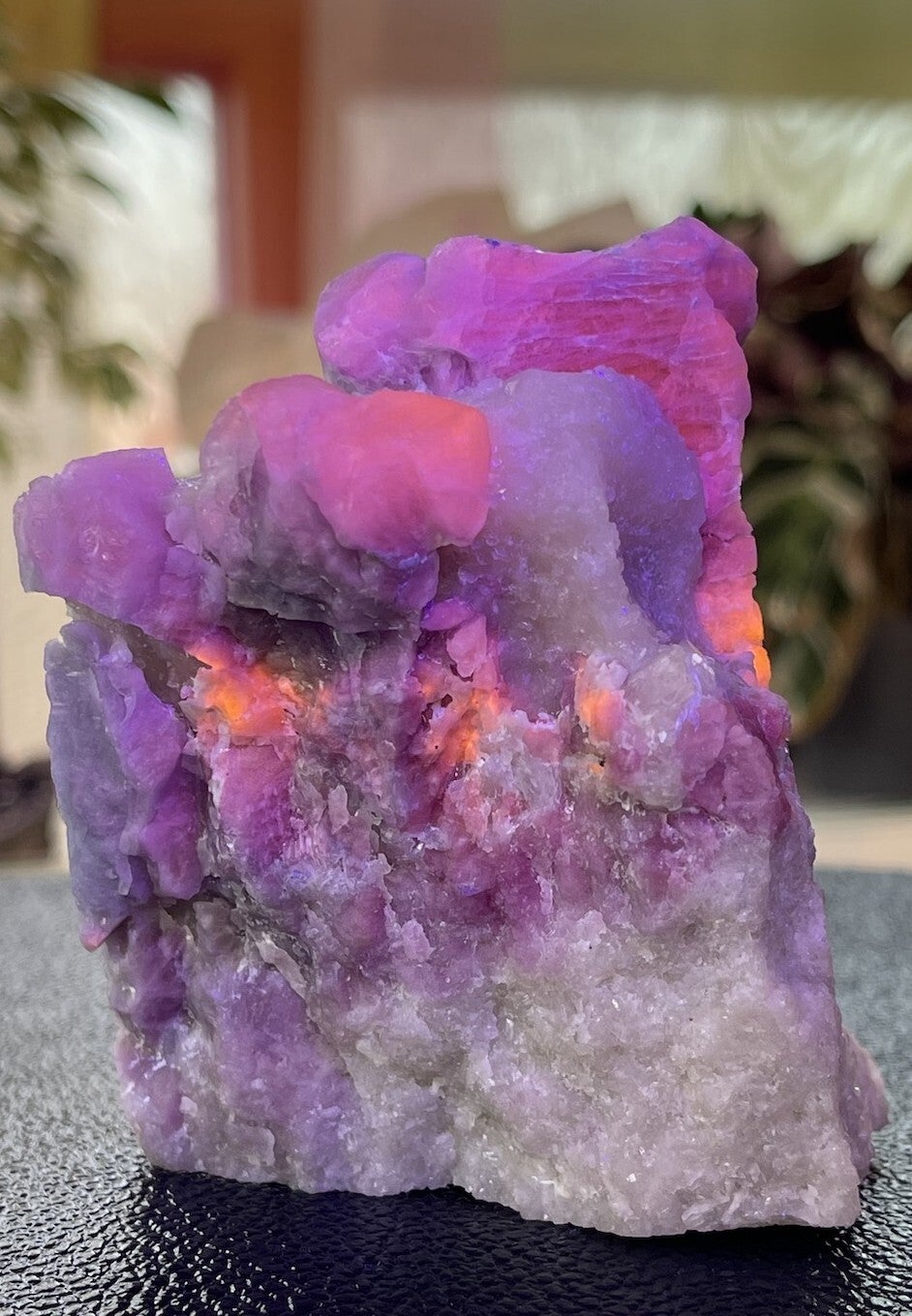 Hackmaniet is een fluorescerende steen die van kleur verandert in UV licht naar roze en oranje