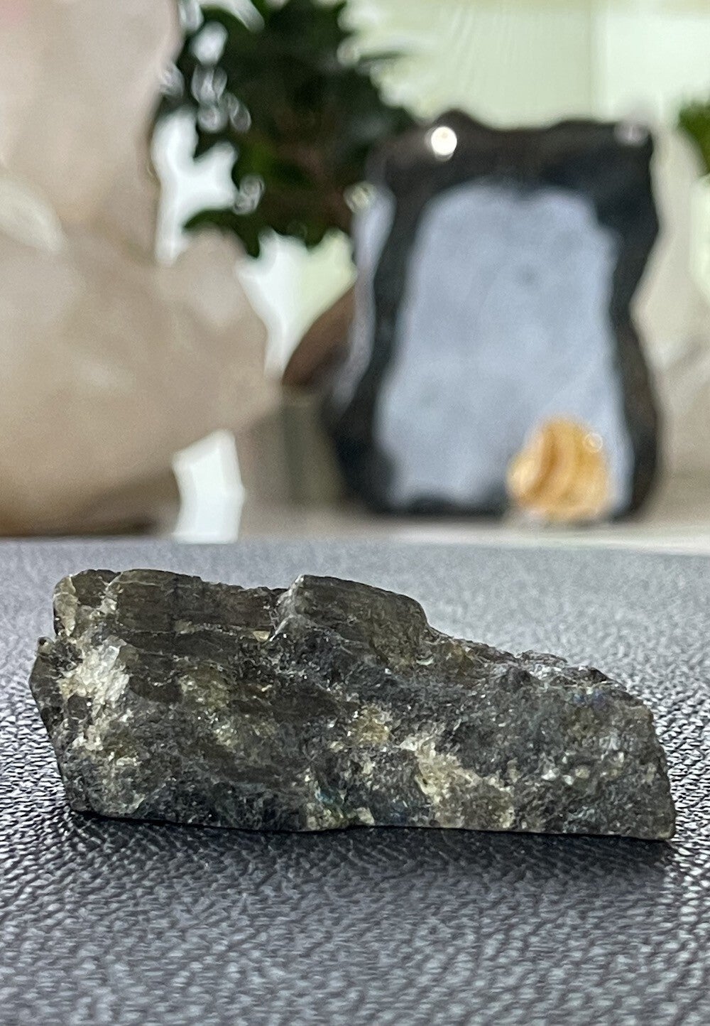 Labradoriet uit Madagaskar ruw, één zijde gepolijst, klein-medium