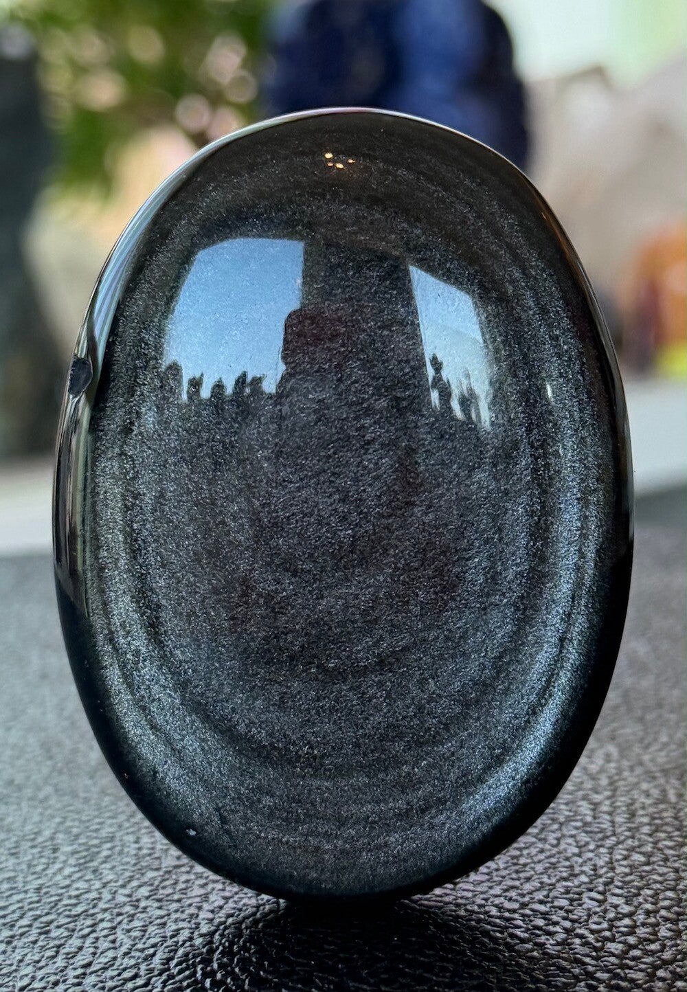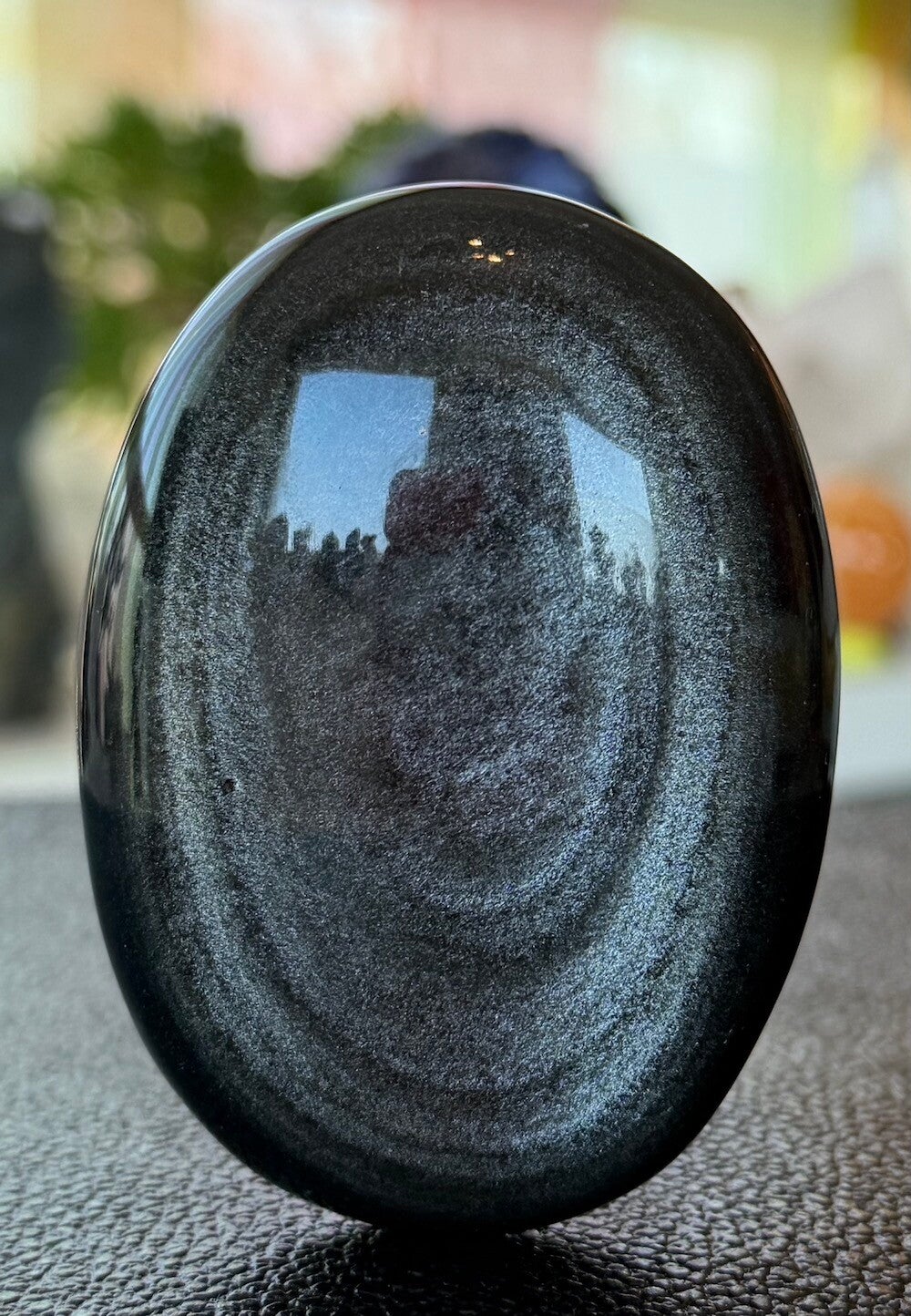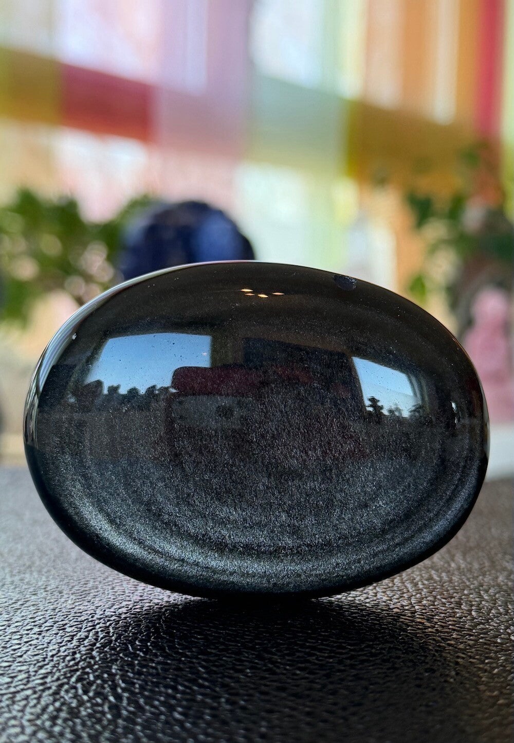 Regenboog Obsidiaan heeft de algemene eigenschappen van Obsidiaan, en is daarnaast een sterk beschermende steen. Het helpt blokkades inzien, bevordert diepe meditatie en verwijdert stress uit het lichaam. De energie van Regenboog Obsidiaan is zachter dan die van zwarte Obsidiaan.
