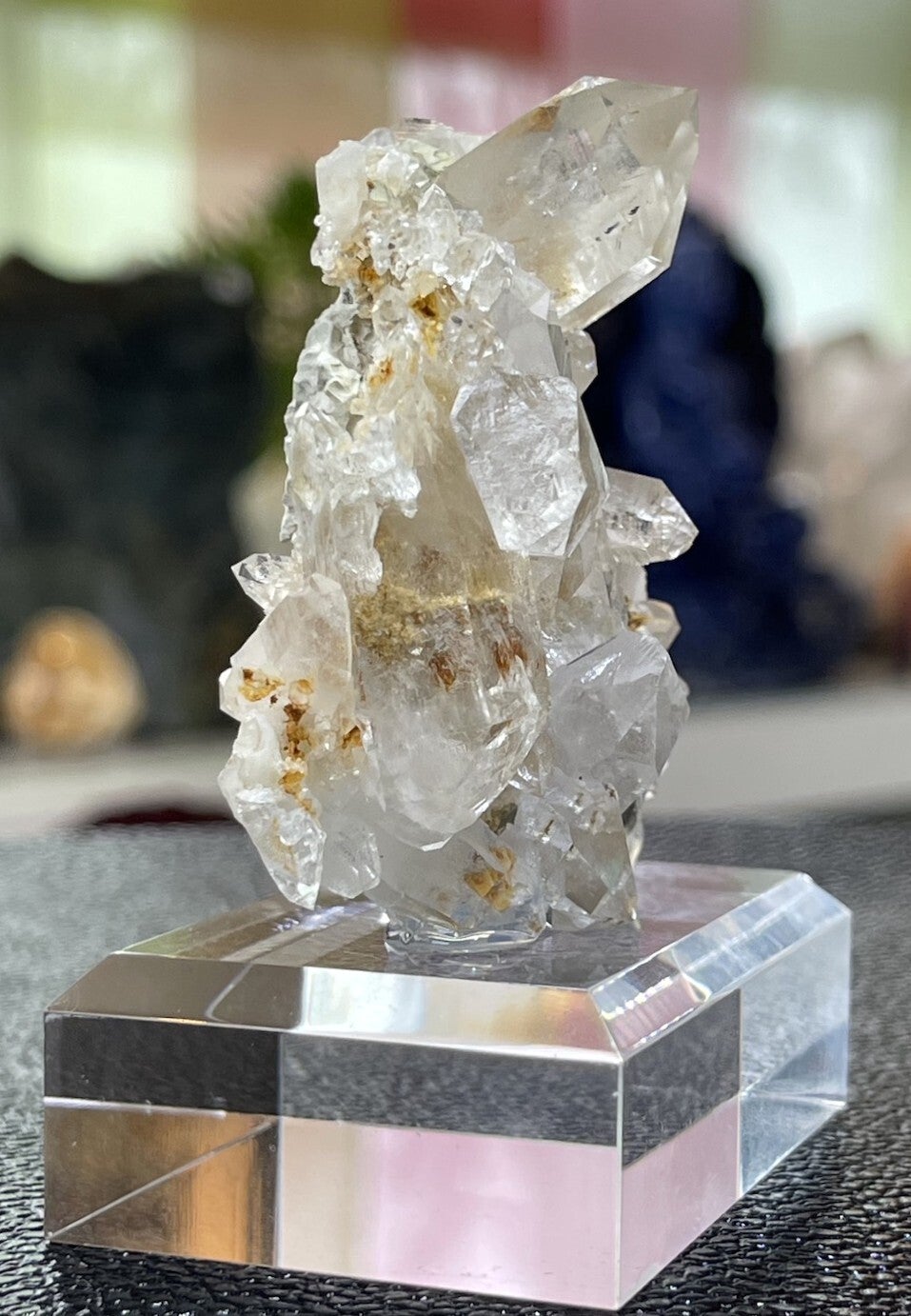 Ruw stukje Bergkristal cluster met mooie heldere puntjes met Limoniet uit Tarentaise, Frankrijk, medium