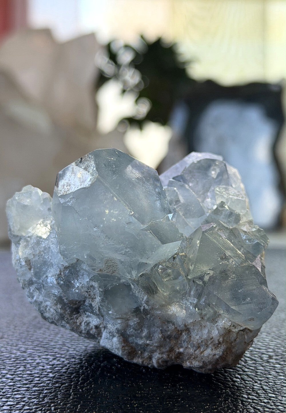 Prachtig ruw stukje Celestien uit Madagascar, ook Coelestien of Celestiet genoemd, met grote heldere punten, medium