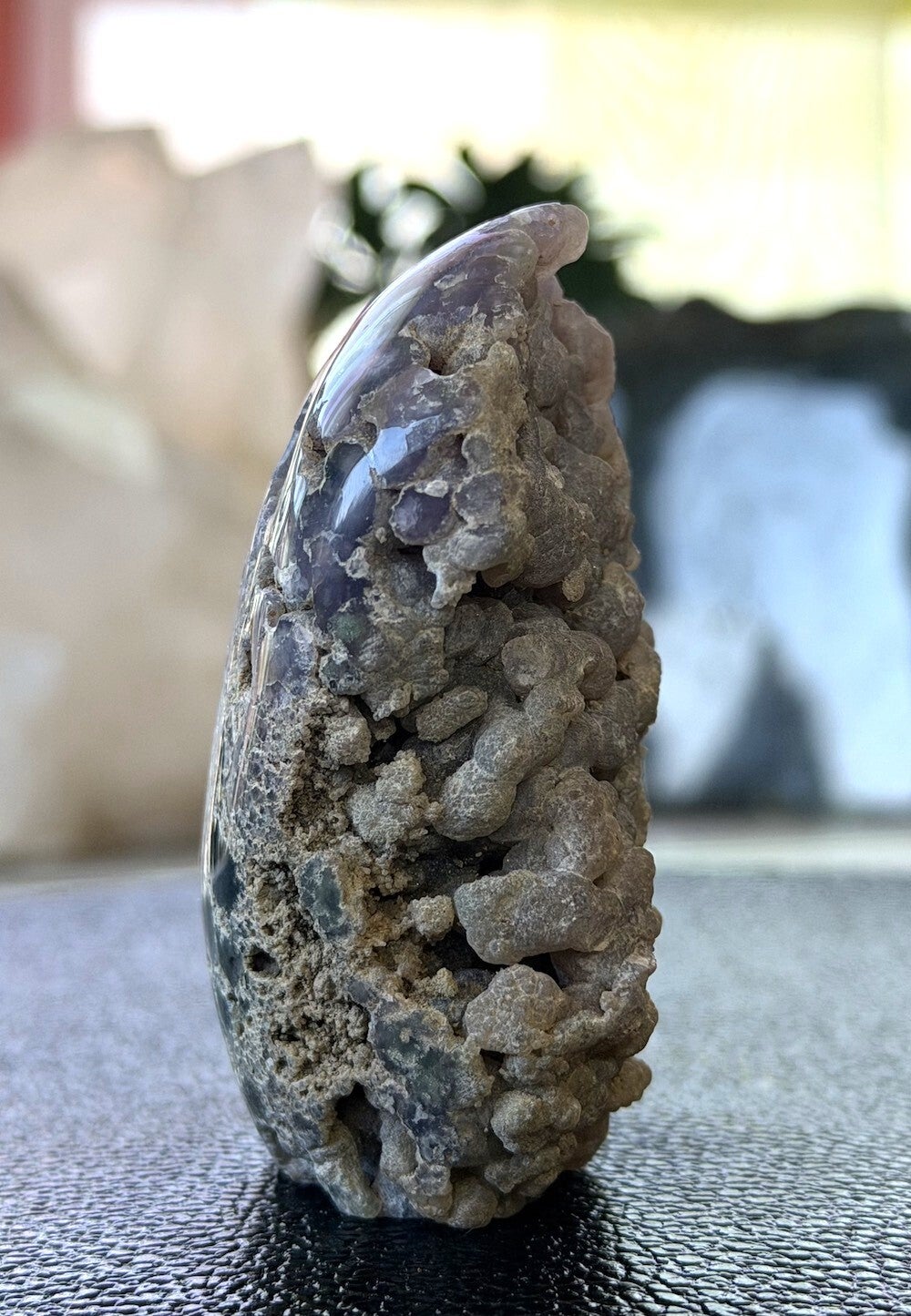 Ruw stukje Druif Agaat of Grape Agaat uit Sulawesi, Indonesië, één zijde gepolijst, free form sculptuur, kan staan. Super leuk stukje!