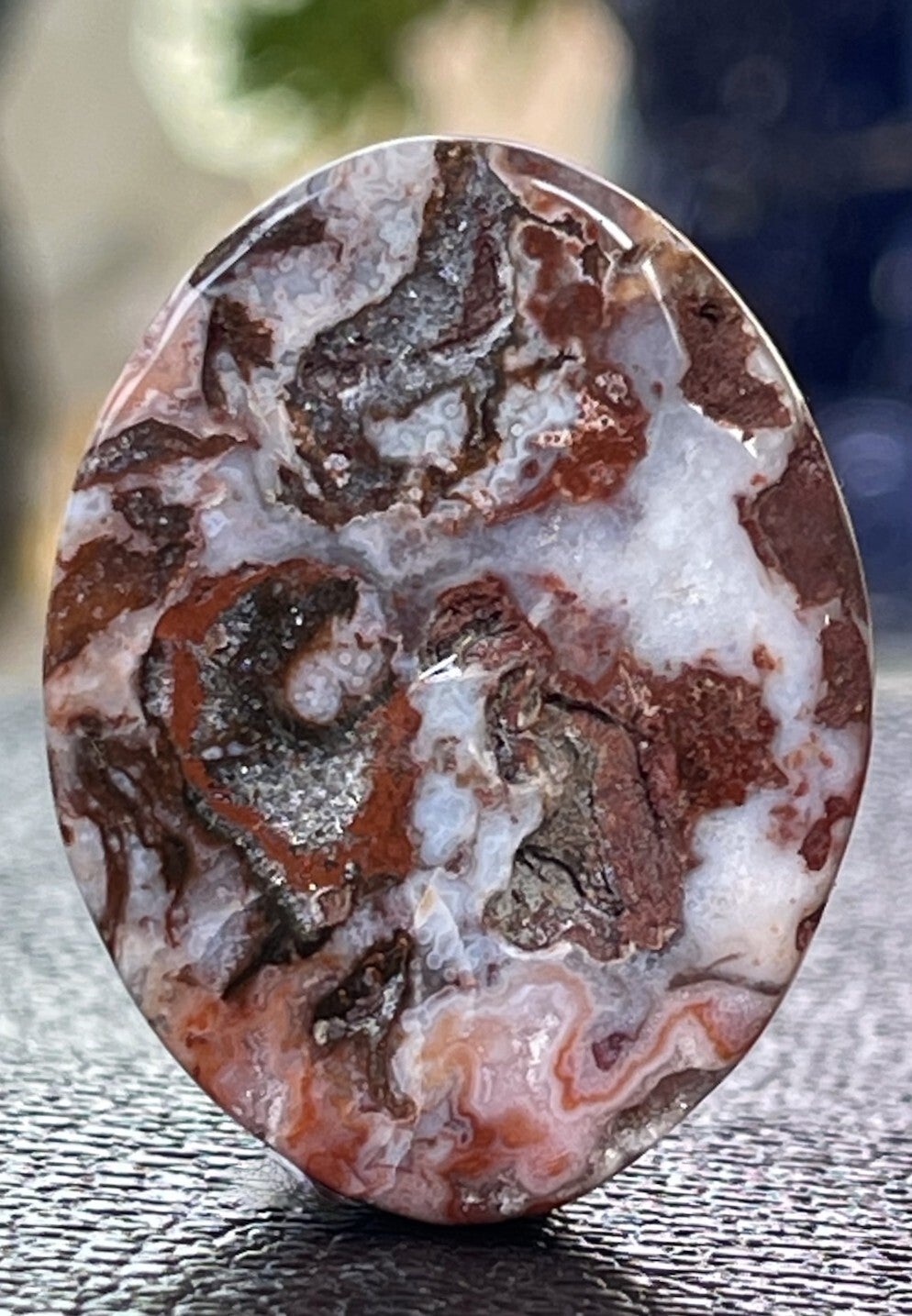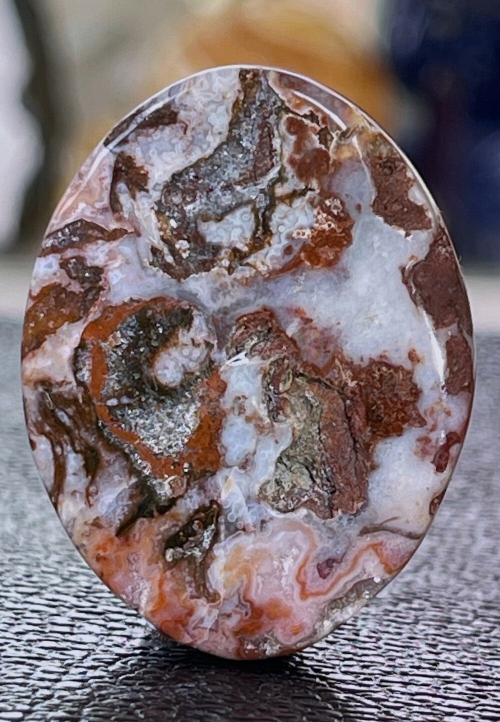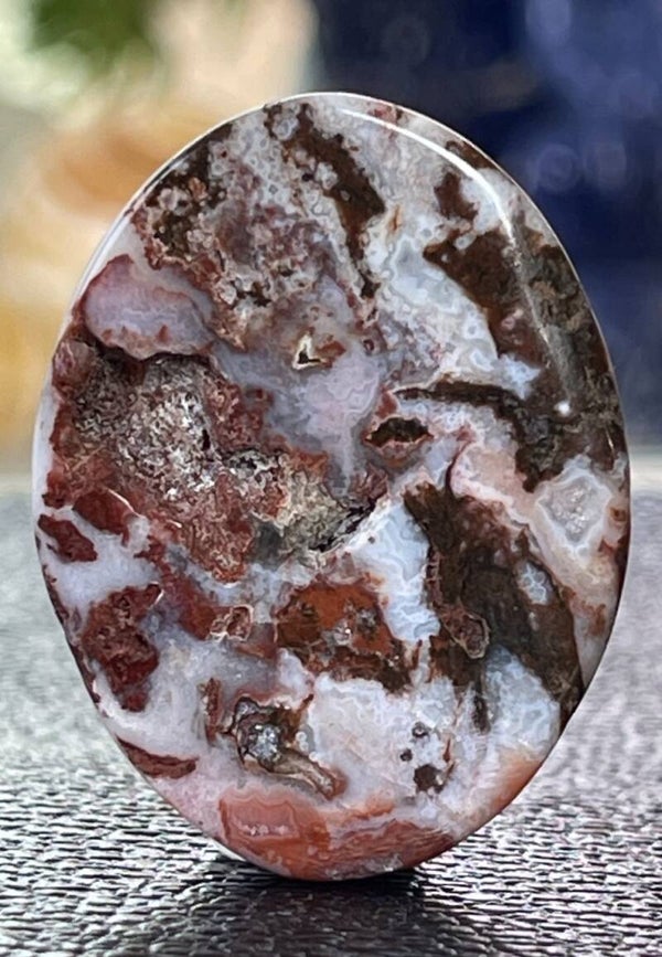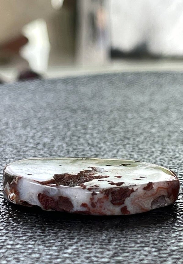 Ocean Jaspis platte knuffelsteen of zaksteen met open en gekristalliseerde delen in de steen