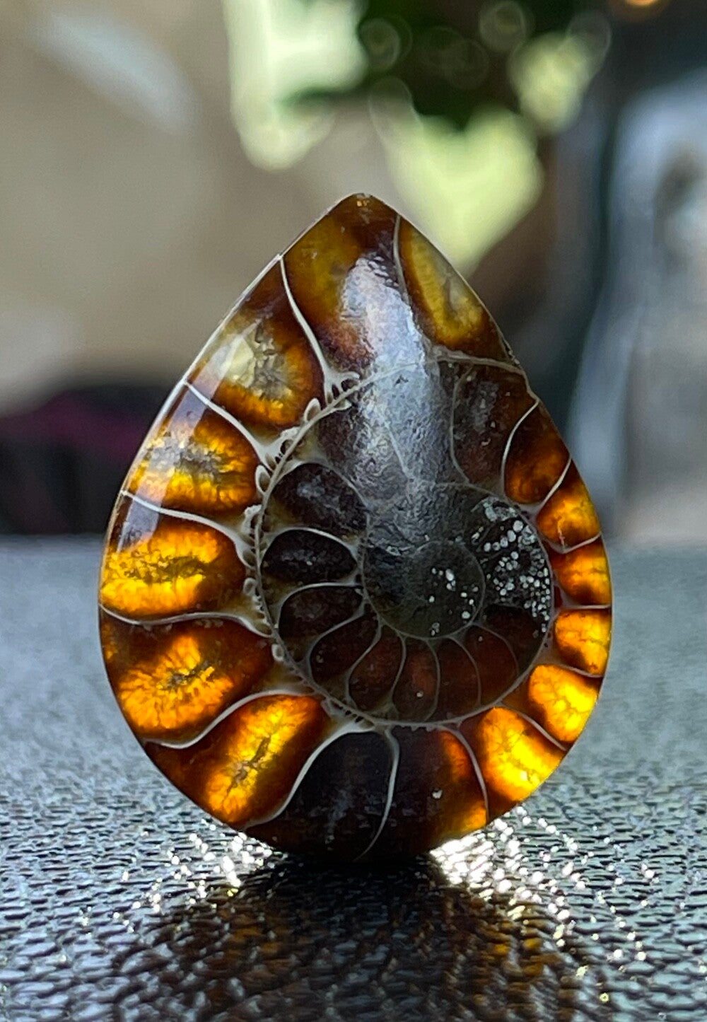 Ammoniet edelsteen cabochon druppel met vlakke achterkant, medium