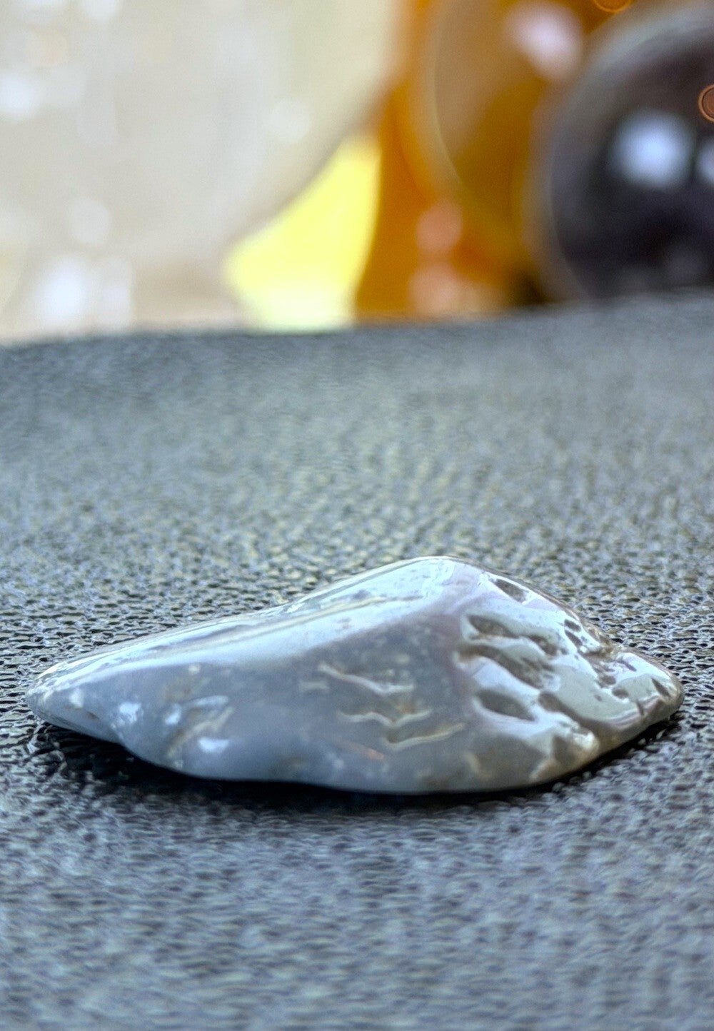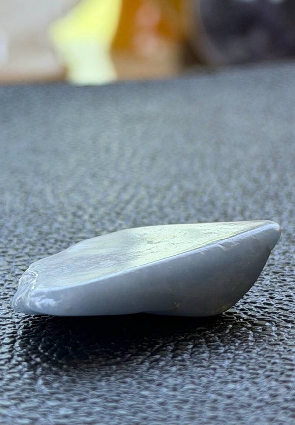Angeliet platte knuffelsteen of zaksteen, met getrommelde buitenrand en -achterkant, klein