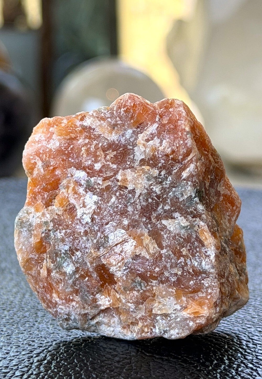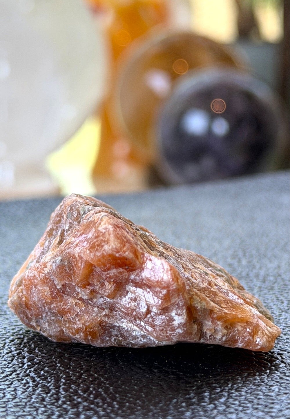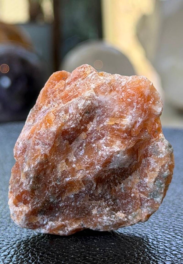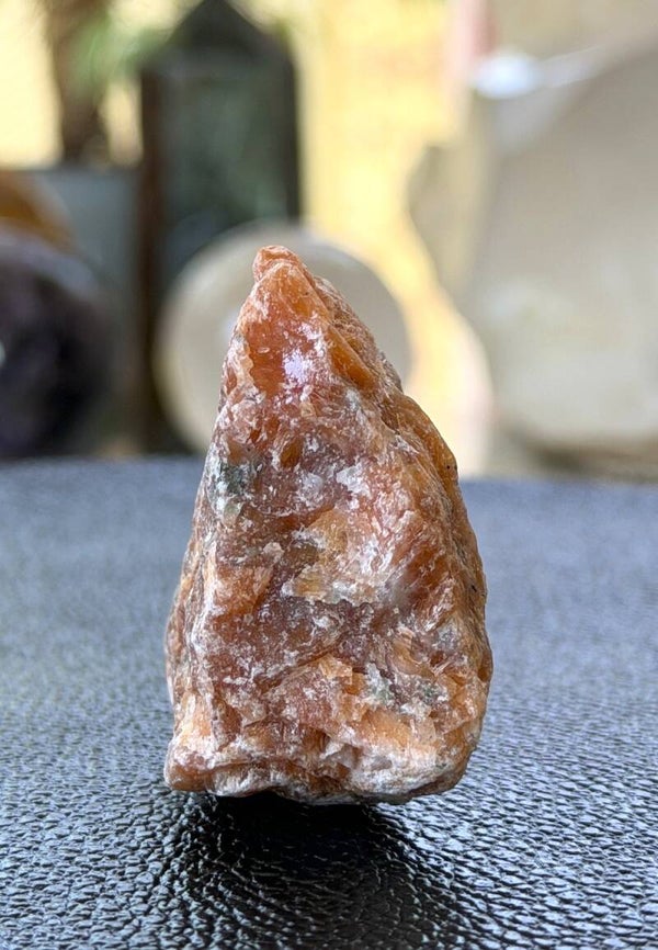 Ruw stukje Vuurcalciet uit Brazilië, met mooie glans in de steen, klein tot medium