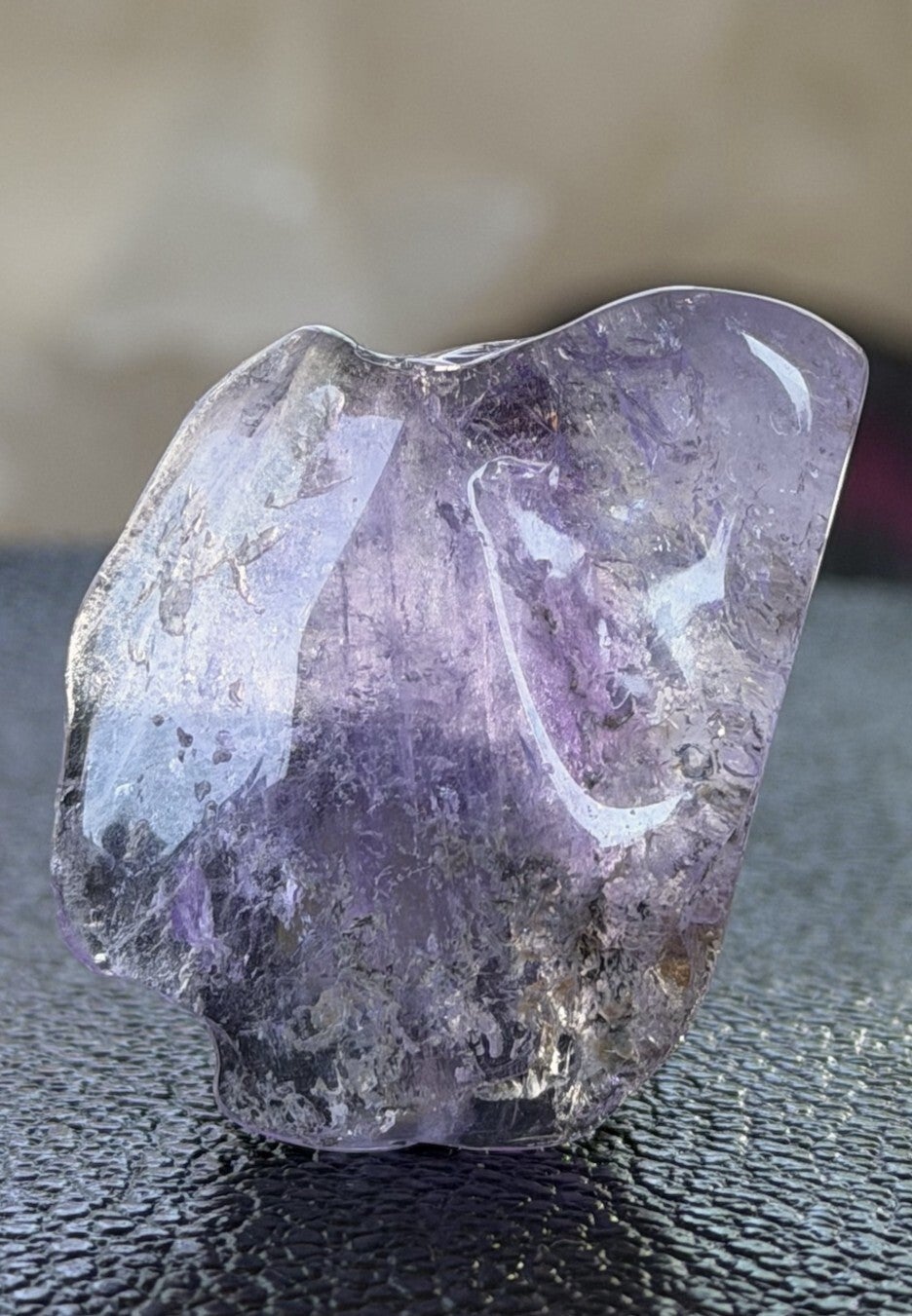 Amethist heeft een beschermende en zuiverende werking. De steen bevordert zelfinzicht en helpt je om eerlijk te zijn naar jezelf toe over gedrag dat schadelijk kan zijn en niet in dienst is van je hoogste zelf. Het helpt je bijvoorbeeld om verslavingen te onderkennen en aan te pakken.