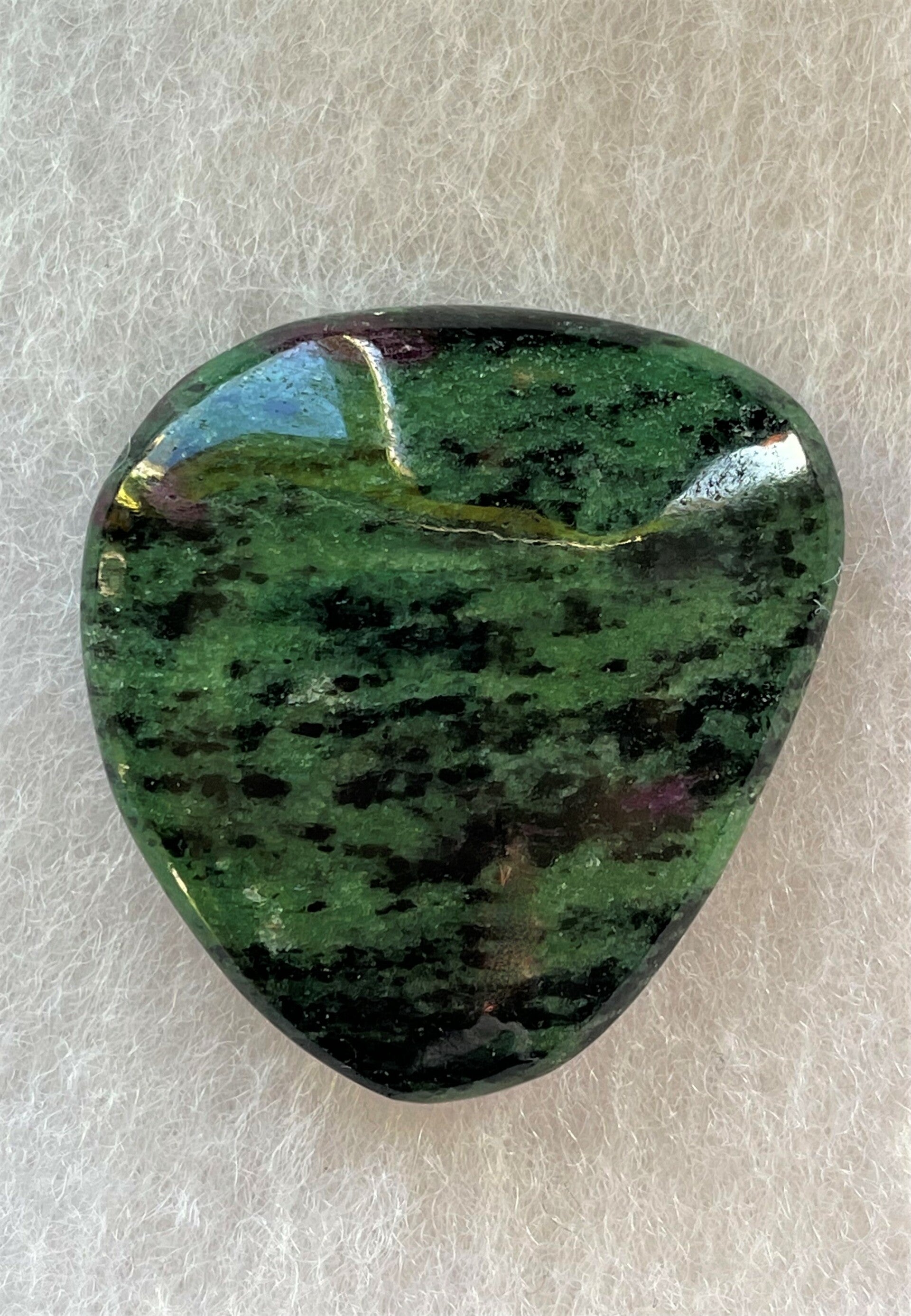 Robijn in Zoisiet platte knuffelsteen of zaksteen
