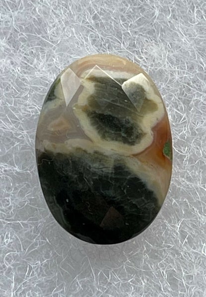 Ocean Jaspis edelsteen checker facet geslepen met vlakke achterkant ovaal, klein
