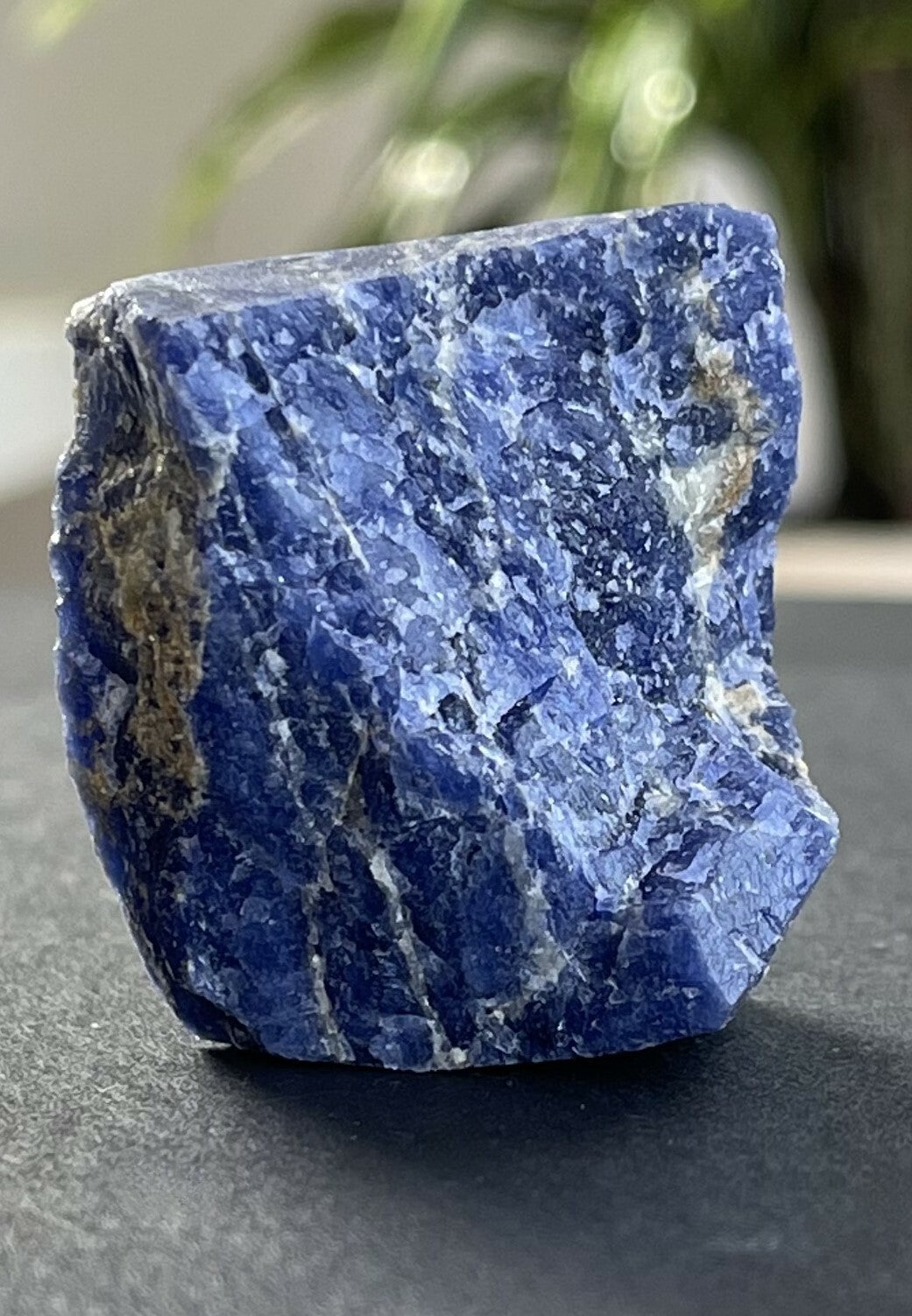 Prachtig stukje Sodaliet uit Namibië met ruwe bovenkant, achterkant vlak, rechthoekig gesneden, klein