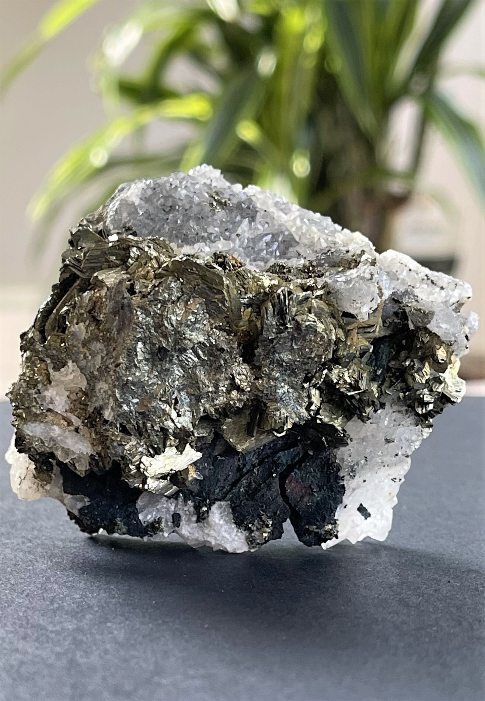 Ruw stukje Pyriet met Apophylliet uit Marokko