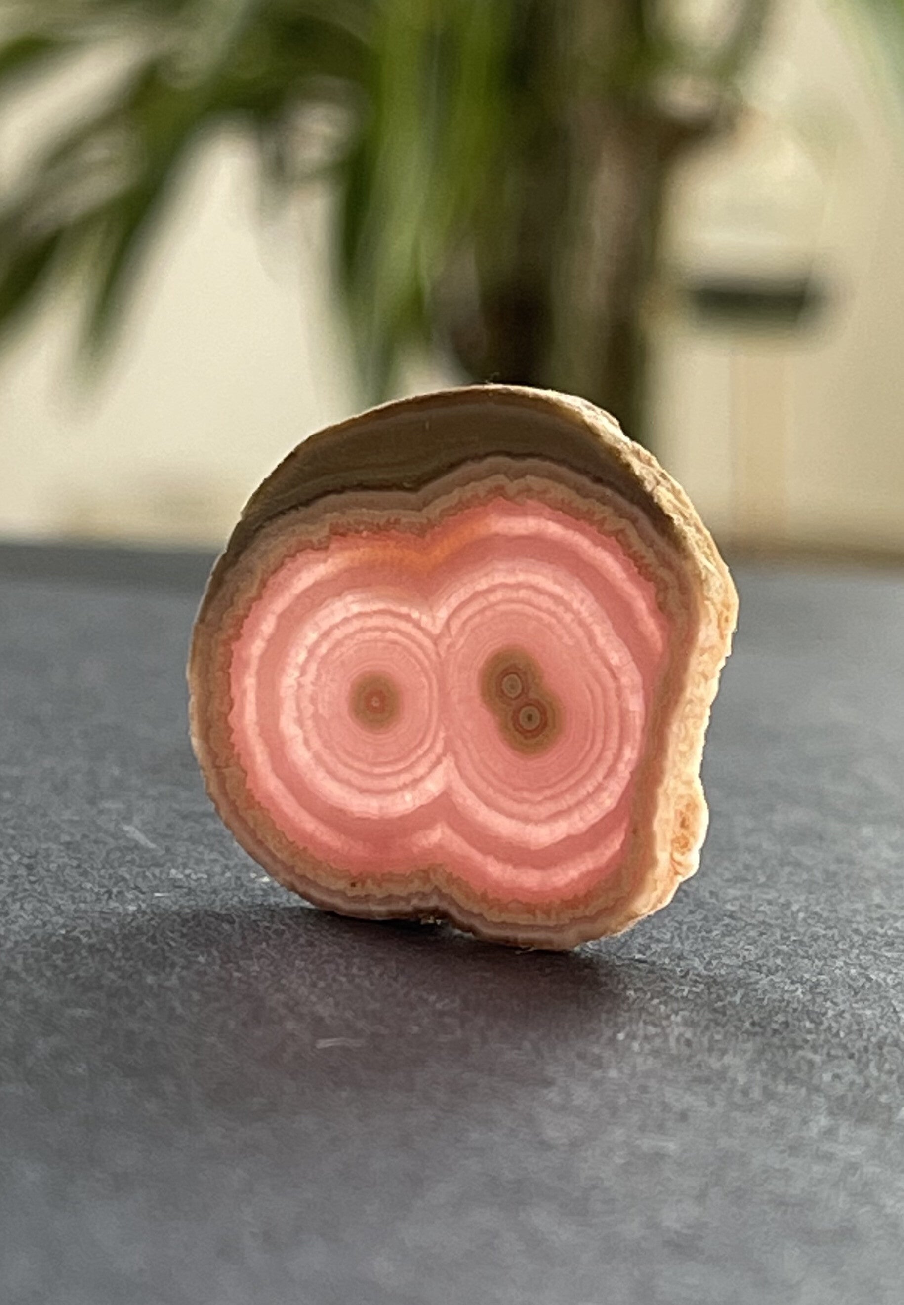 Rhodochrosiet edelsteen schijfje, beide zijden geslepen
