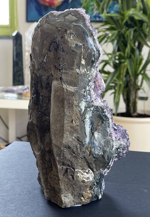 Amethist is vanwege haar reinigende werking ook heel geschikt om een ruimte te zuiveren. Samen met Bergkristal en Rozenkwarts creëert het een harmonische sfeer. Omdat het de bovenste chakra’s stimuleert, kan het de intuïtie, spirituele groei en inzichten bevorderen, zeker voor mensen die aan het begin staan van hun spirituele pad.
