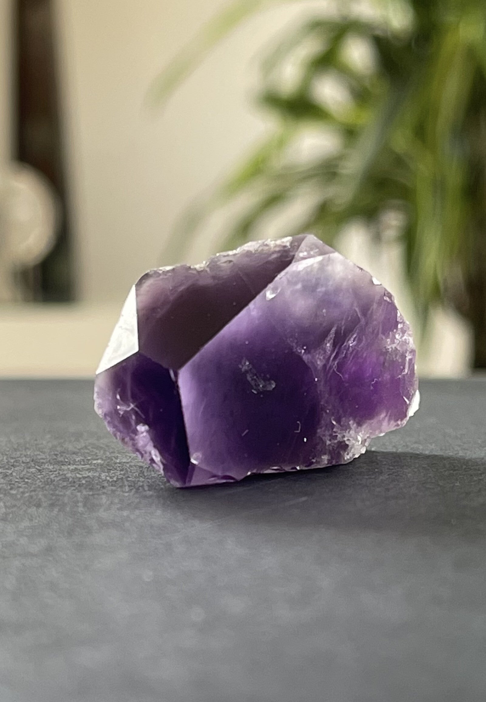 Amethist heeft een beschermende en zuiverende werking. De steen bevordert zelfinzicht en helpt je om eerlijk te zijn naar jezelf toe over gedrag dat schadelijk kan zijn en niet in dienst is van je hoogste zelf. Het helpt je bijvoorbeeld om verslavingen te onderkennen en aan te pakken.