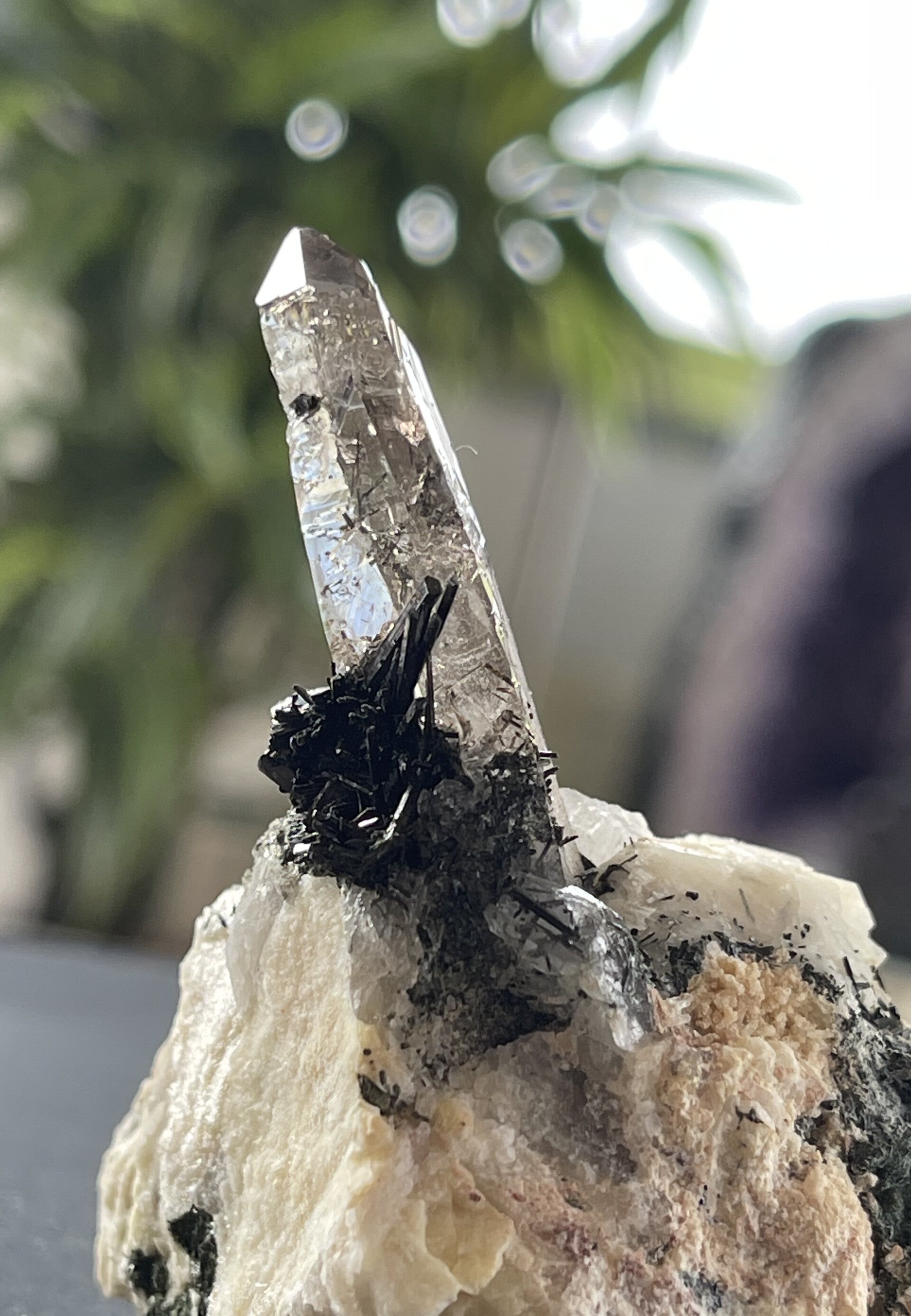 Aegirien met en in Rookkwarts punt op moedergesteente, Topstuk!