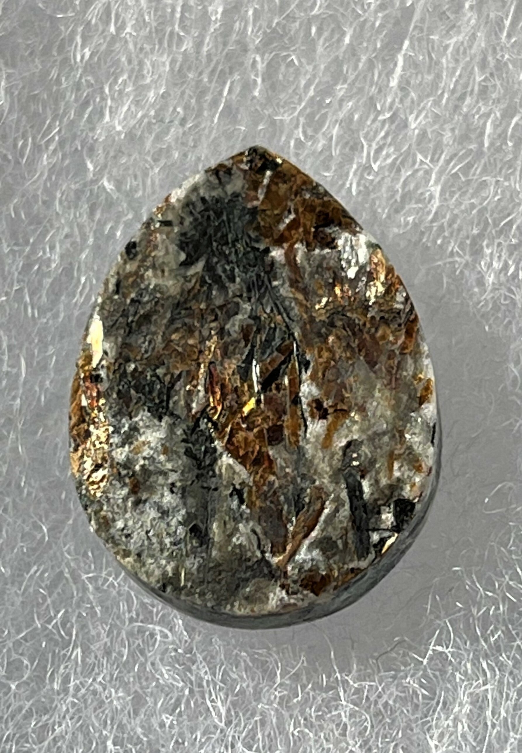 Astrophylliet edelsteen met ruwe bovenkant en vlakke achterkant druppel, medium