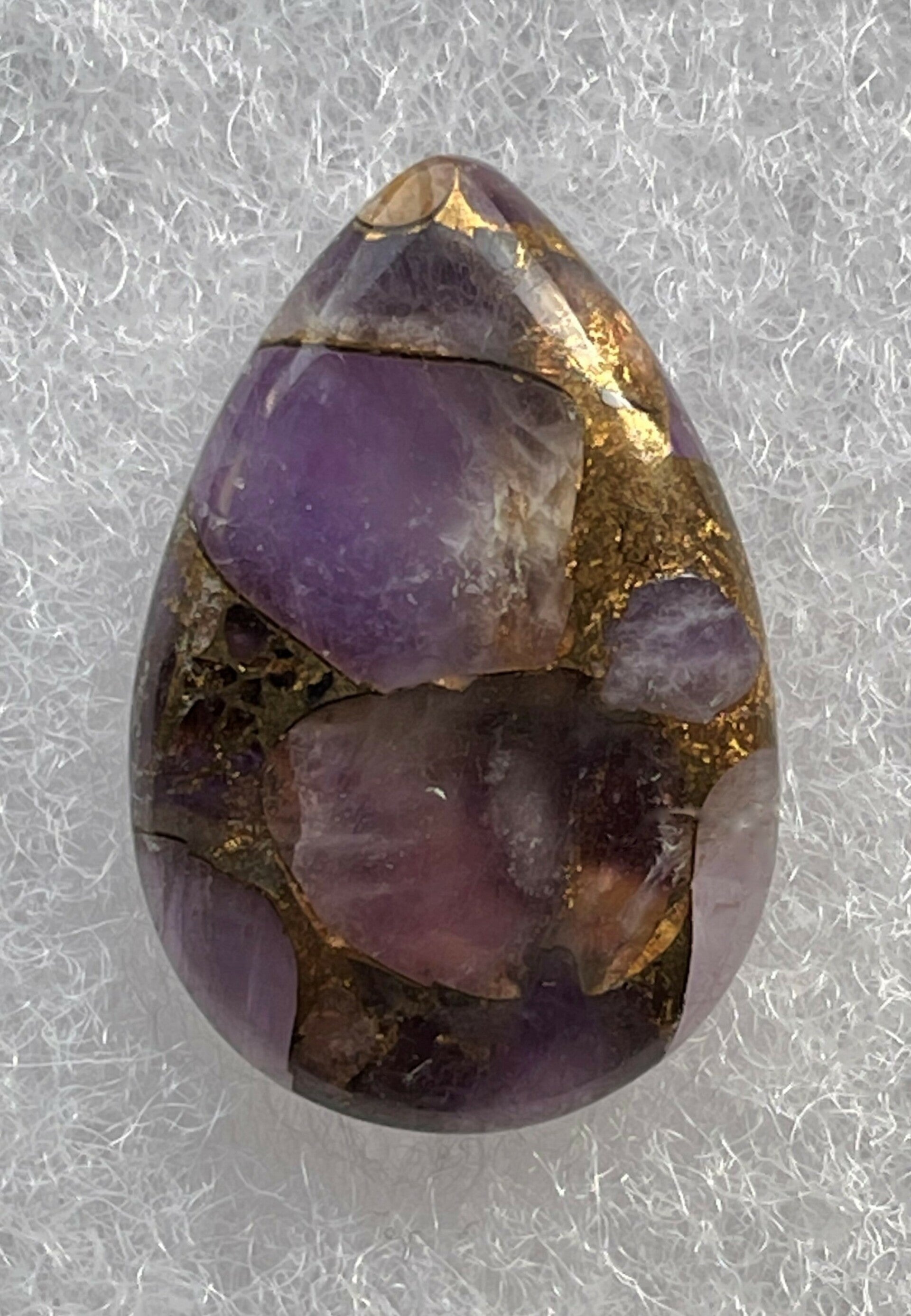 Koper Amethist edelsteen cabochon met vlakke achterkant druppel, medium, samengesteld