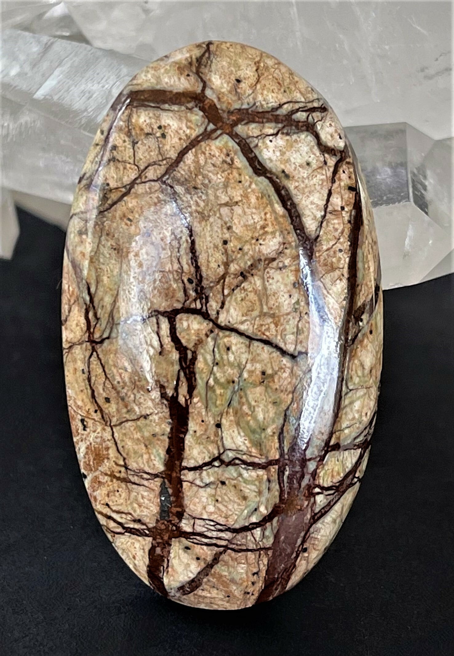 Jaspis edelsteen cabochon met vlakke achterkant ovaal, met soort boomtekening, groot
