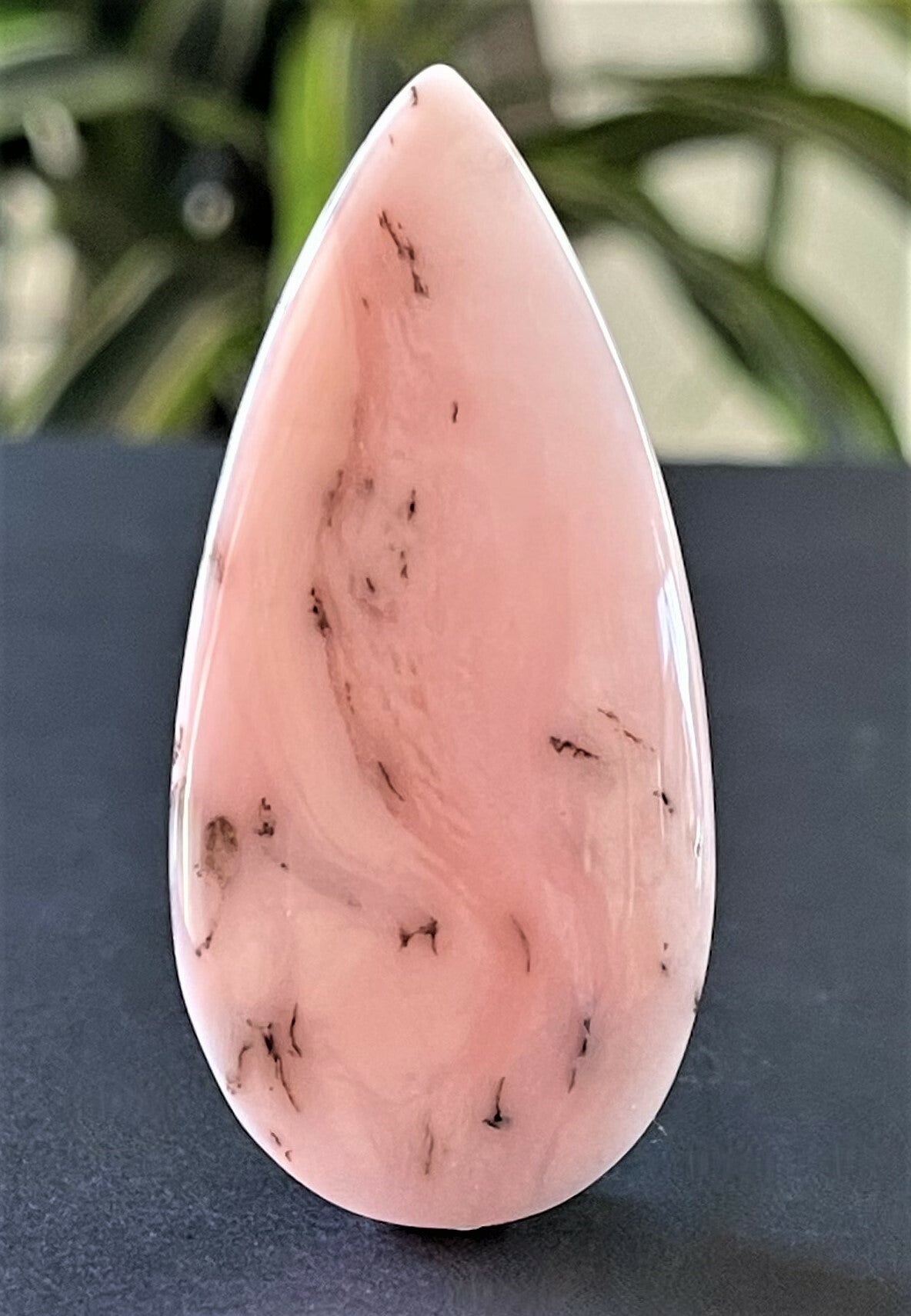 Roze Opaal edelsteen met Dendriet cabochon met vlakke achterkant lange druppel vorm, groot