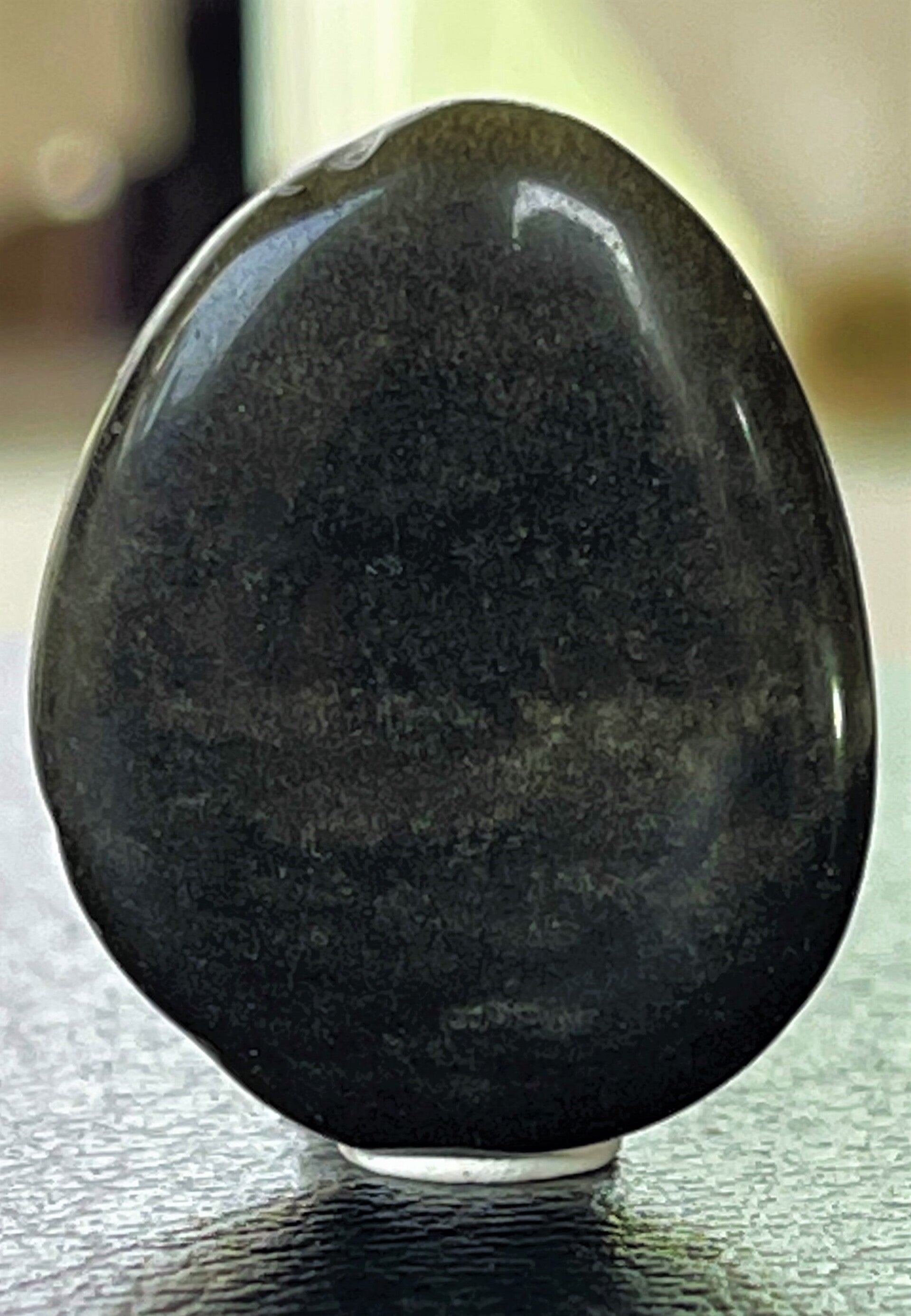 Zilverobsidiaan platte knuffelsteen of zaksteen