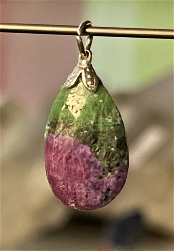 Robijn met Zoisiet hangertje facet geslepen, met veter