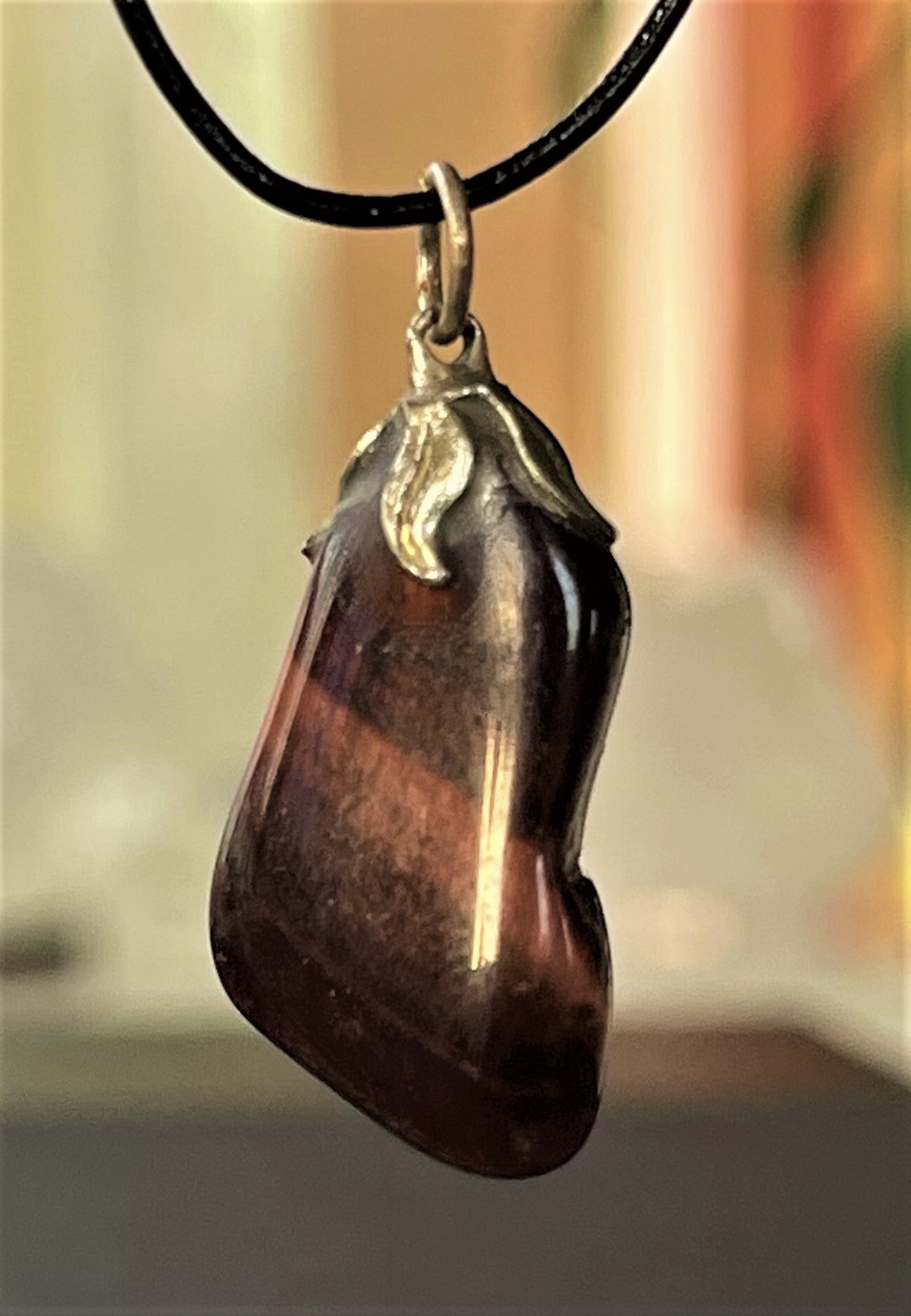 Rode Tijgeroog hanger, soms ook Kattenoog genoemd, met veter