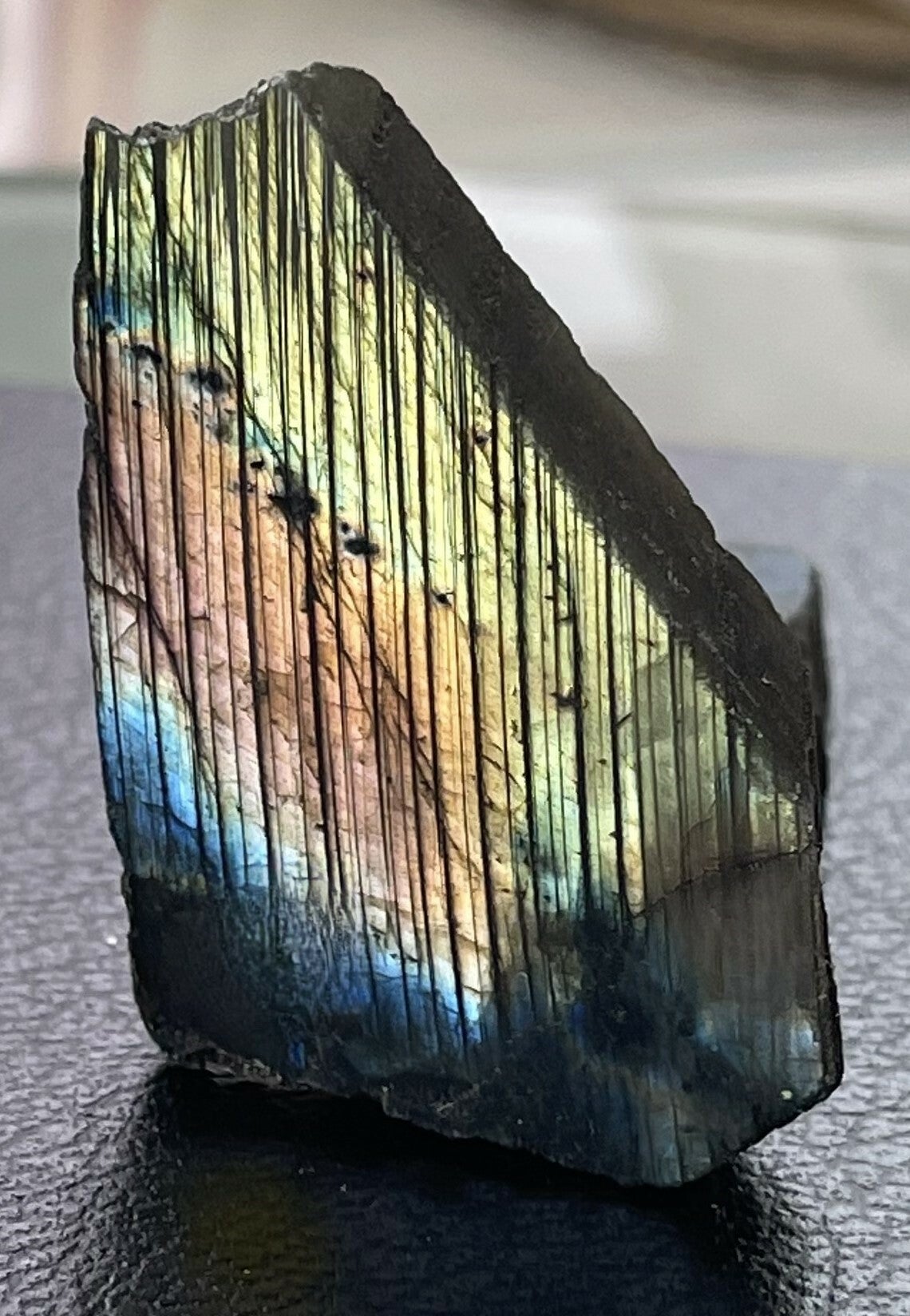 Labradoriet schijf, één zijde gepolijst