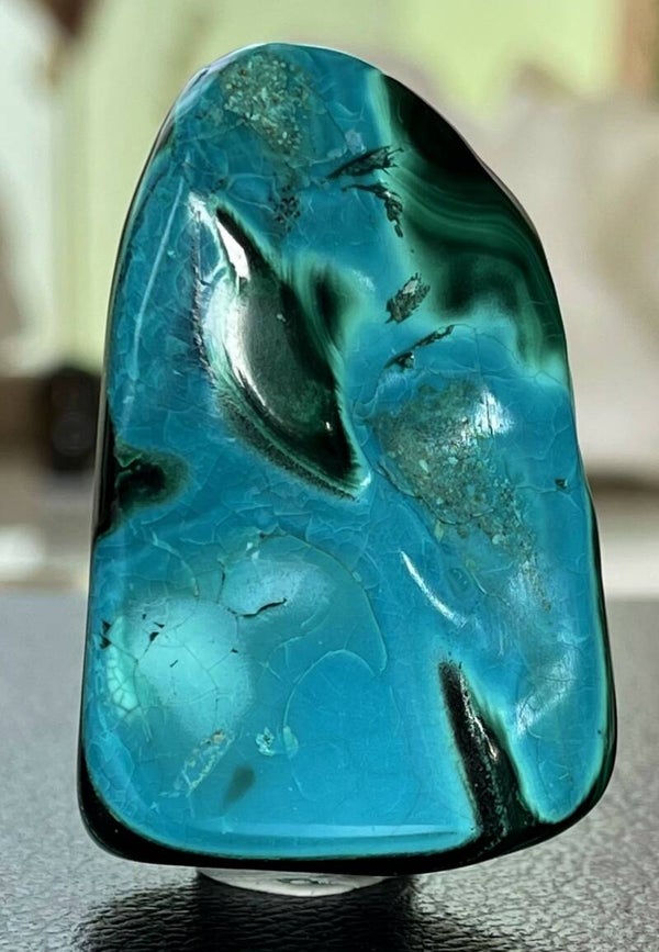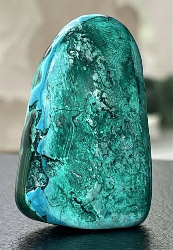 Prachtige kwaliteit Chrysocolla met Malachiet uit Lubumbashi, Provincie Katanga, congo, één zijde gepolijst, kan staand neergezet worden