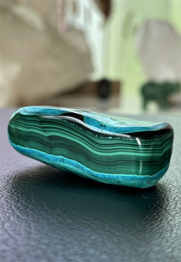 Chrysocolla en Malachiet uit Congo, één zijde gepolijst