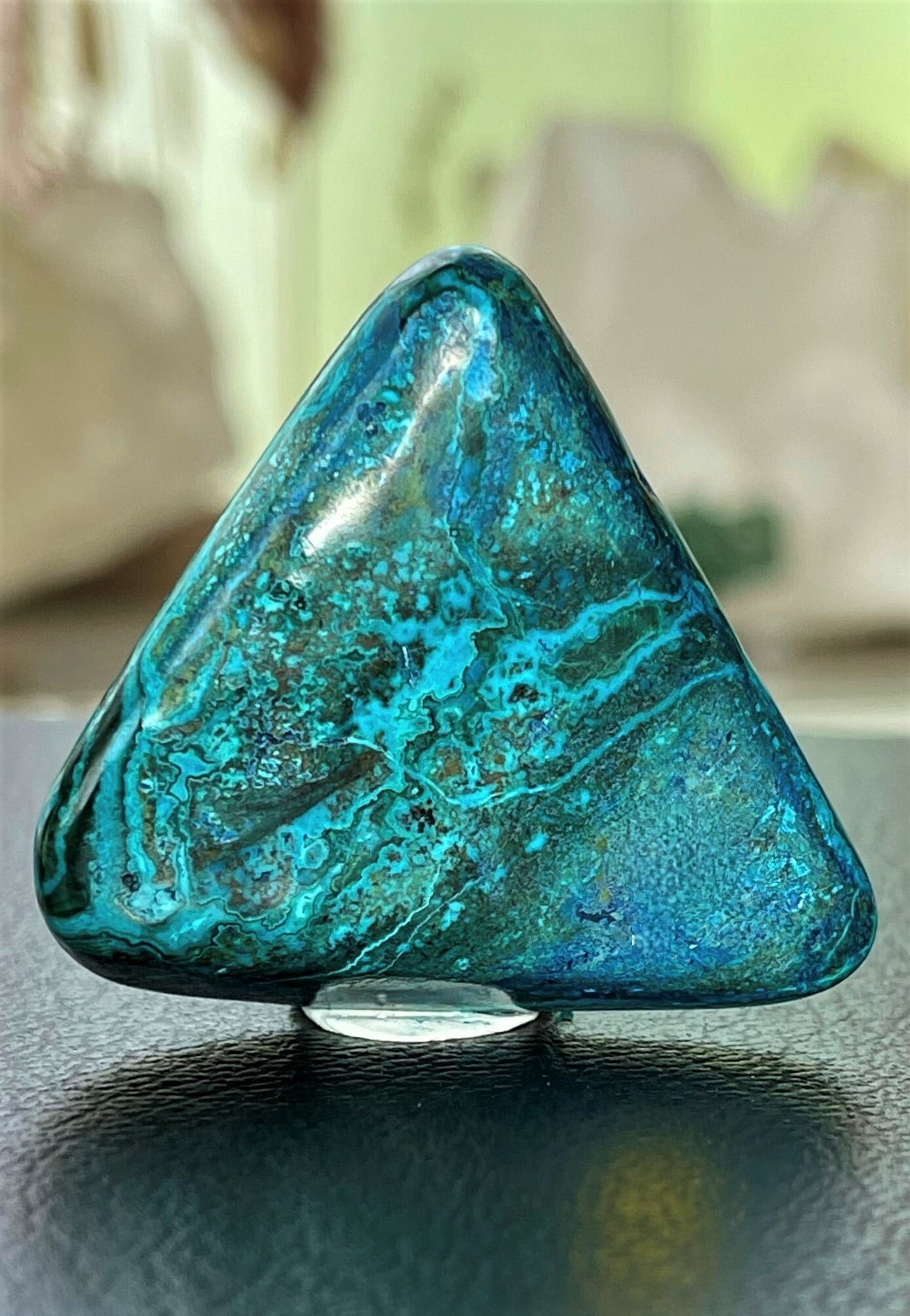 Prachtige kwaliteit Chrysocolla met Malachiet uit Lubumbashi, Provincie Katanga, Congo, één zijde gepolijst, plat driehoekig stukje
