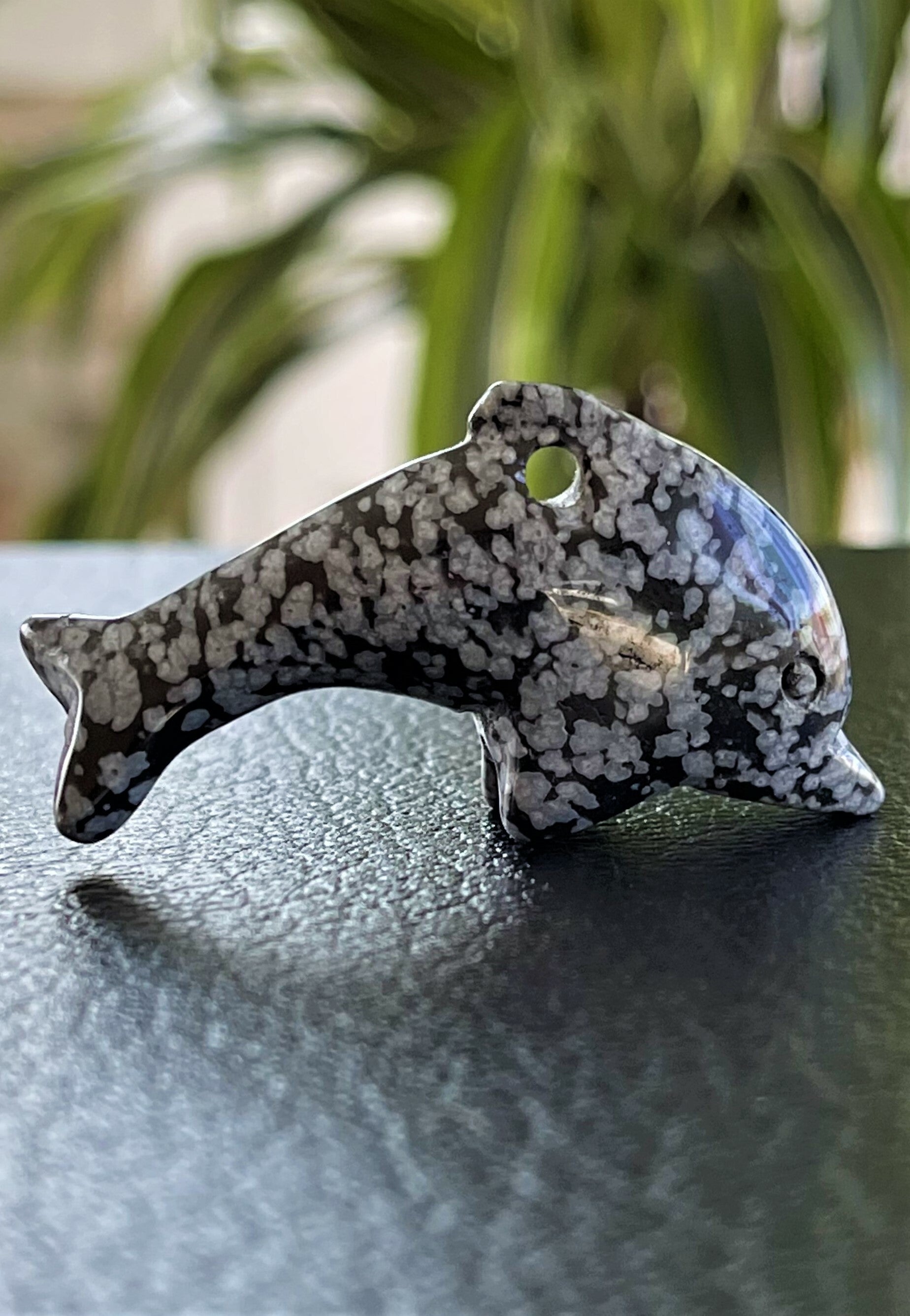 Sneeuwvlok Obsidiaan dolfijn hanger doorboord, met veter