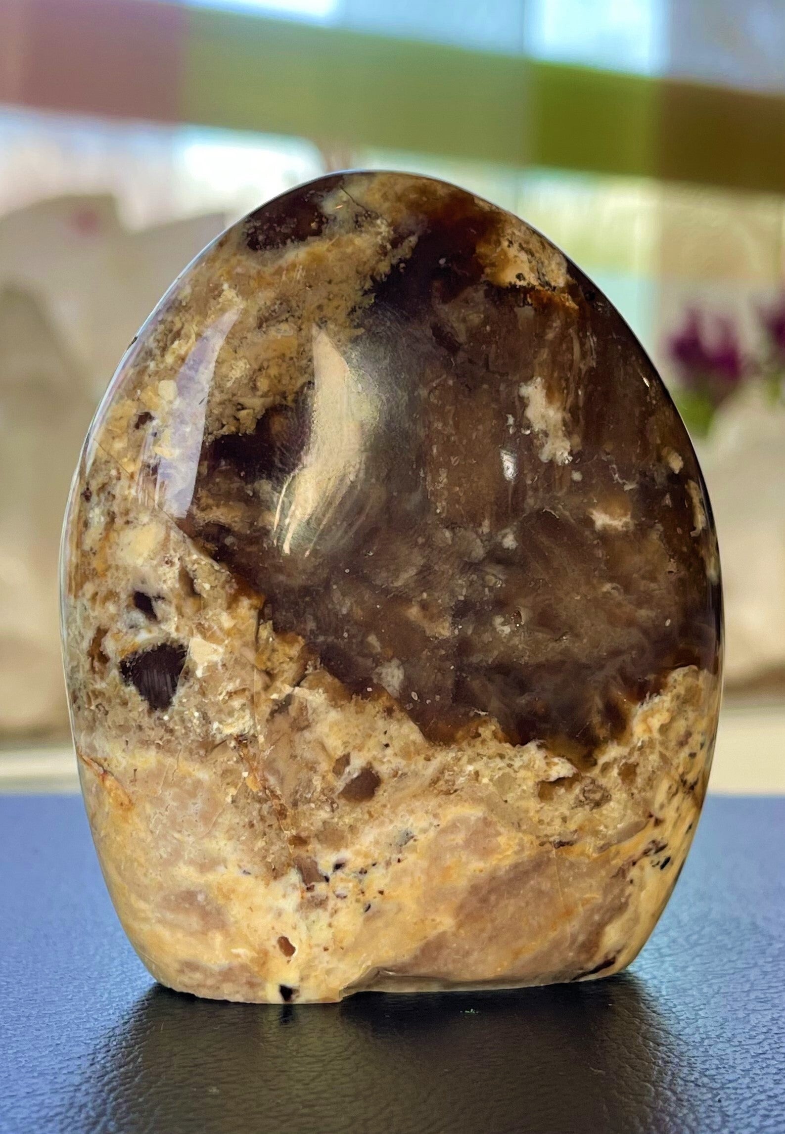 Zwarte of Bruine Opaal met dezelfde zachte energie als andere Opaalsoorten, maar de Zwarte/Bruine Opaal is alsnog een stevige steen die je helpt om uit een onaangename situatie te stappen en die helpt om stilstand te doorbreken. Ook laat hij je eerlijk naar jezelf kijken en zien waar jij de situatie zelf aan kan pakken en op welke manier.