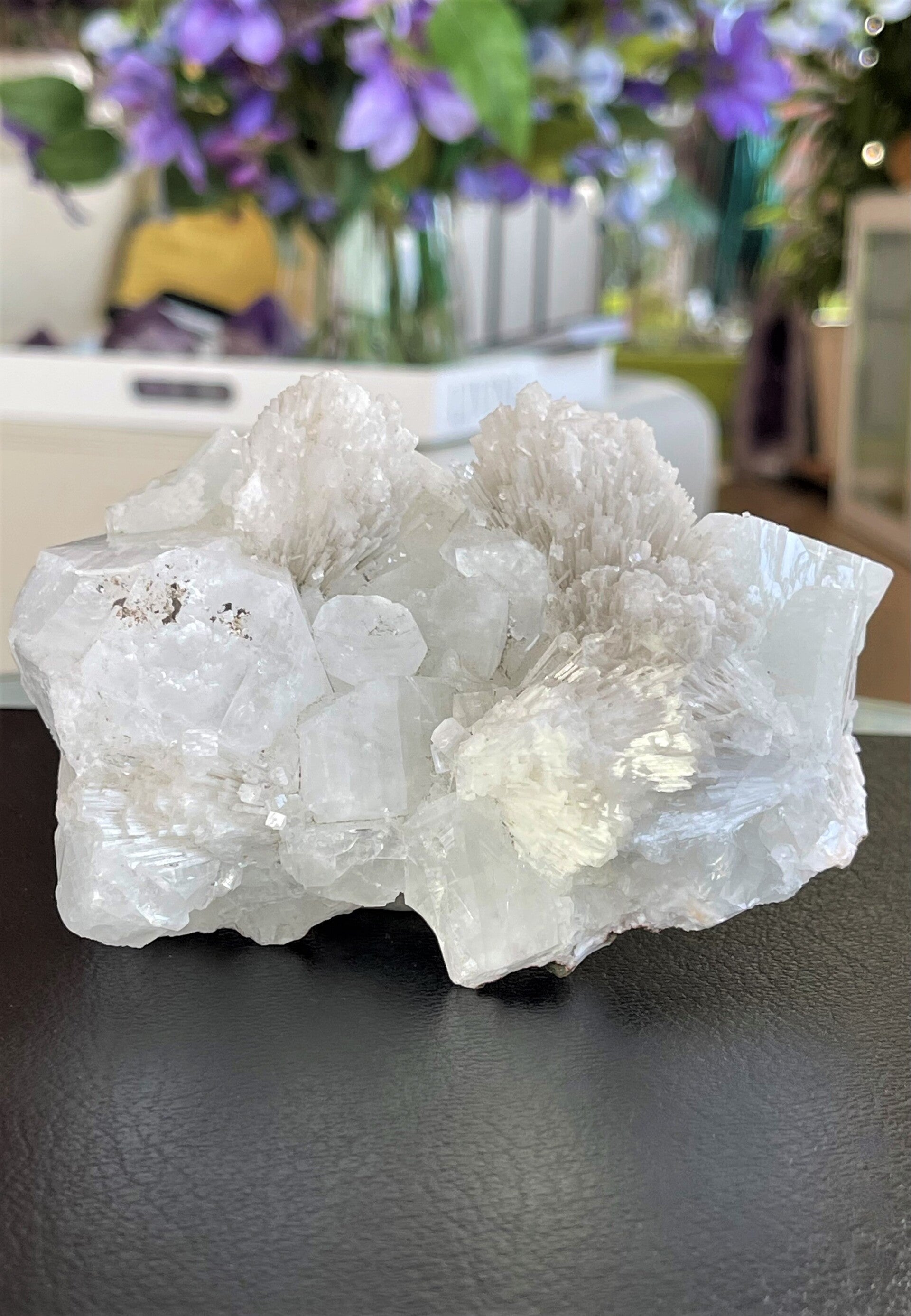 Apofylliet is ook een hele spirituele steen. Het helpt bij de geleiding van energieën en kan daarom heel goed gebruikt worden bij healings en energetisch werk zoals bijvoorbeeld reiki en quantum touch. Mediteren met deze steen geeft spirituele inzichten en kennis. Het werkt aardend bij astraal reizen.