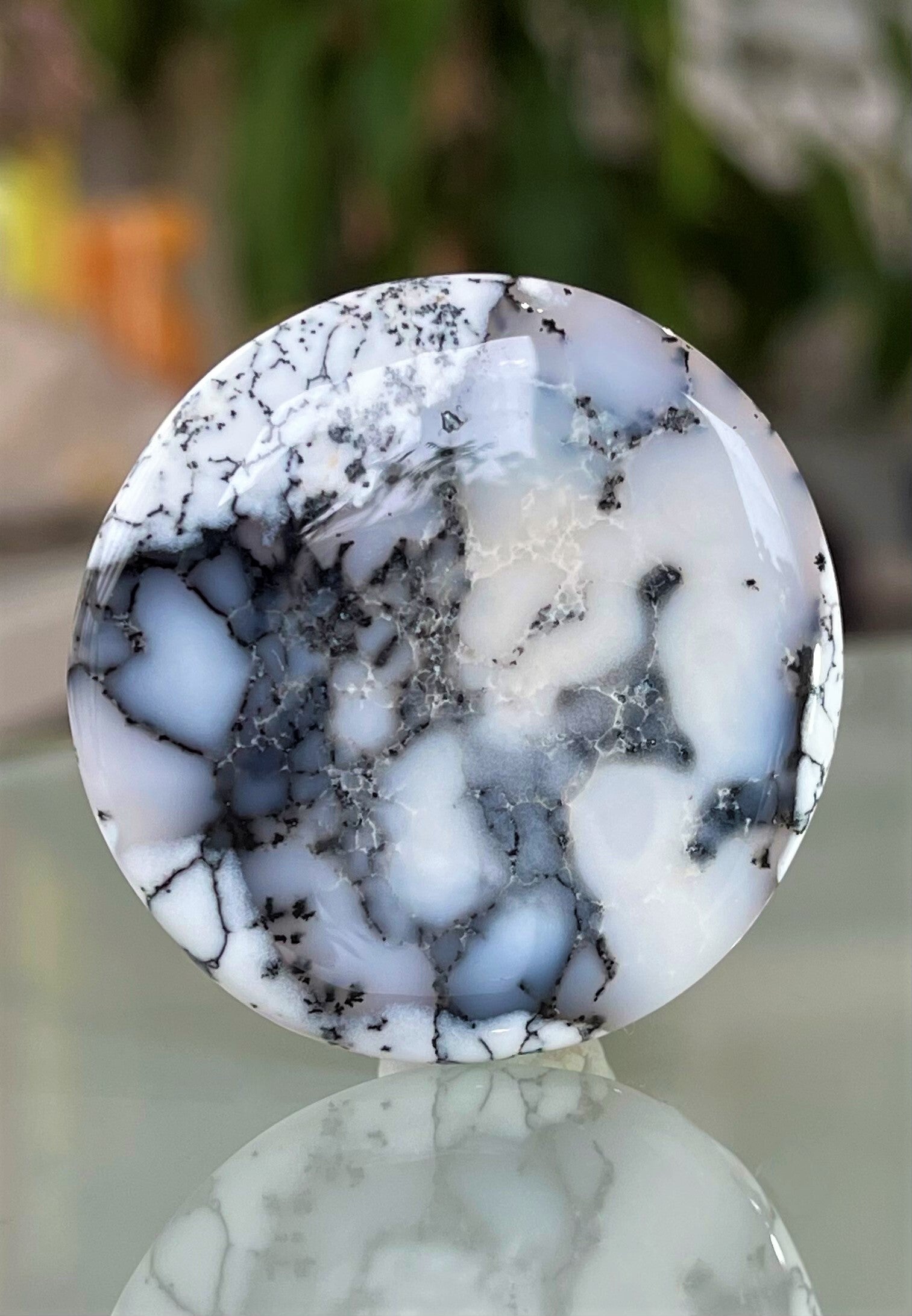 Dendriet Agaat edelsteen met vlakke achterkant, cabochon rond, groot