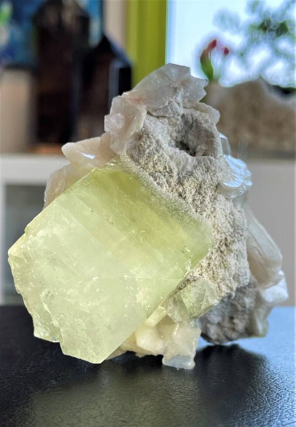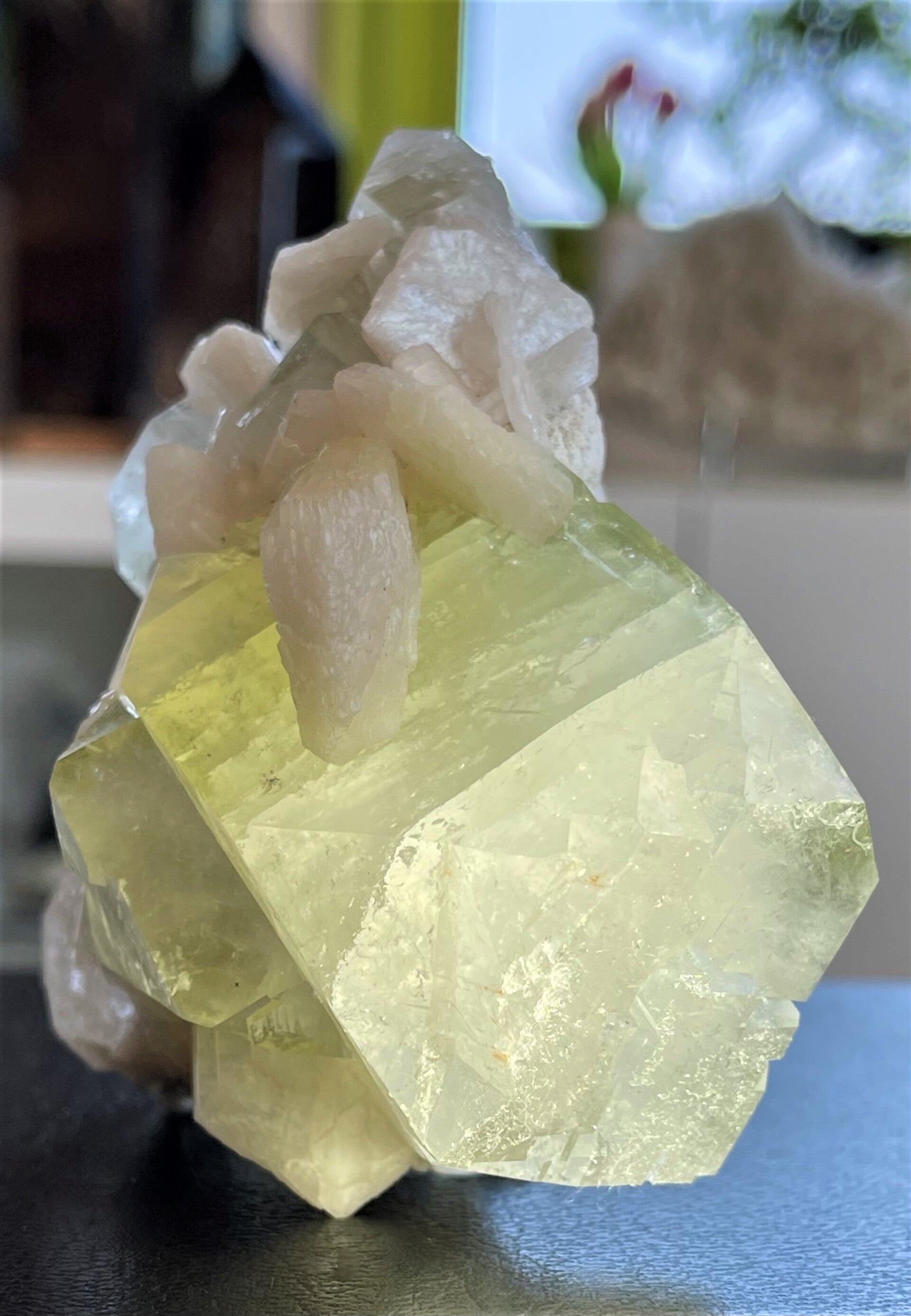 Mooi ruw stukje groene Apophylliet en Stilbiet op moedergesteente, uit India, medium